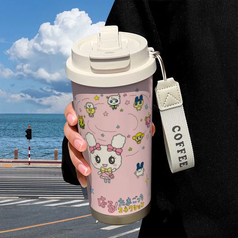 かわいい保温カップ ステンレス製ストロー付き ドリンク 大容量 コーヒー・ウォーターカップ 学生向け 軽量