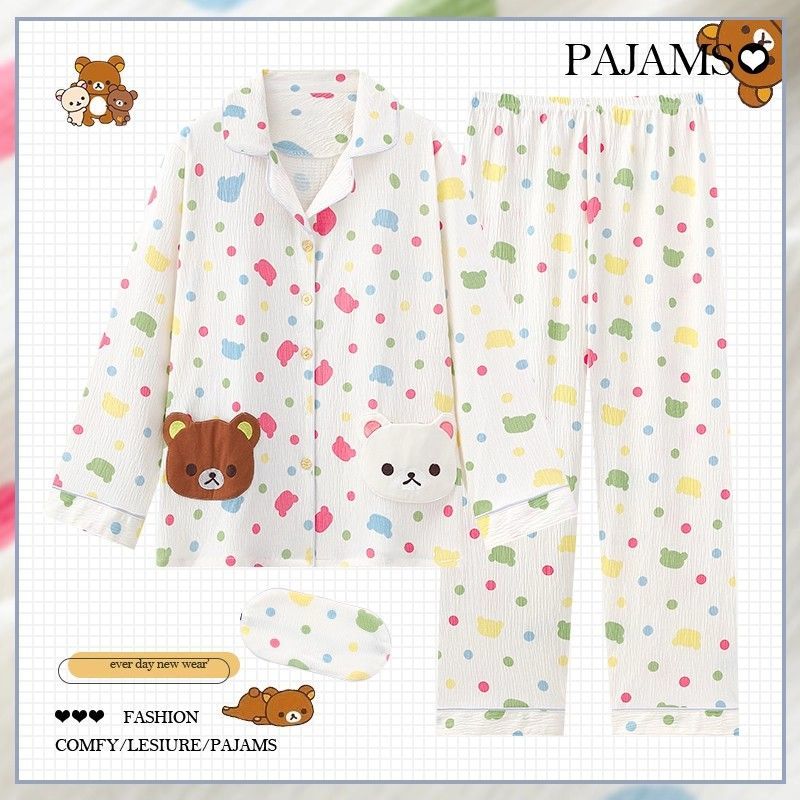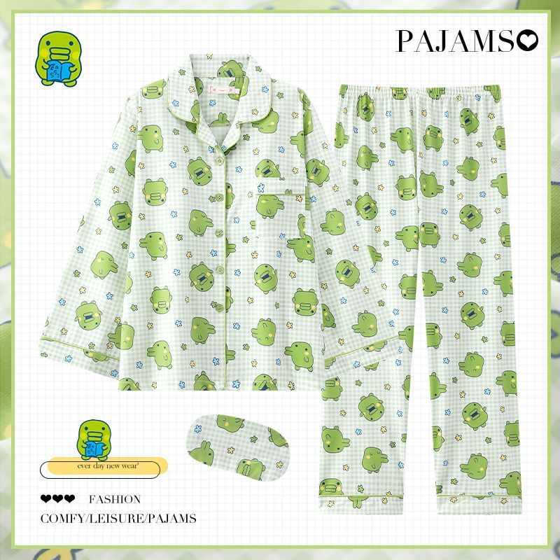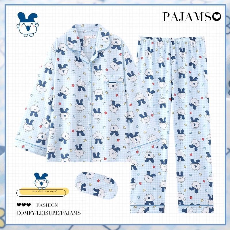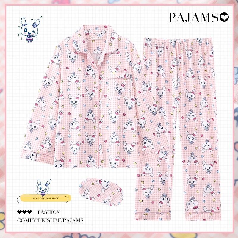 スイートハートジ パジャマ レディース 春秋用 かわいい長袖長ズボン カートゥーン柄 純綿チェック柄 ホームウェア