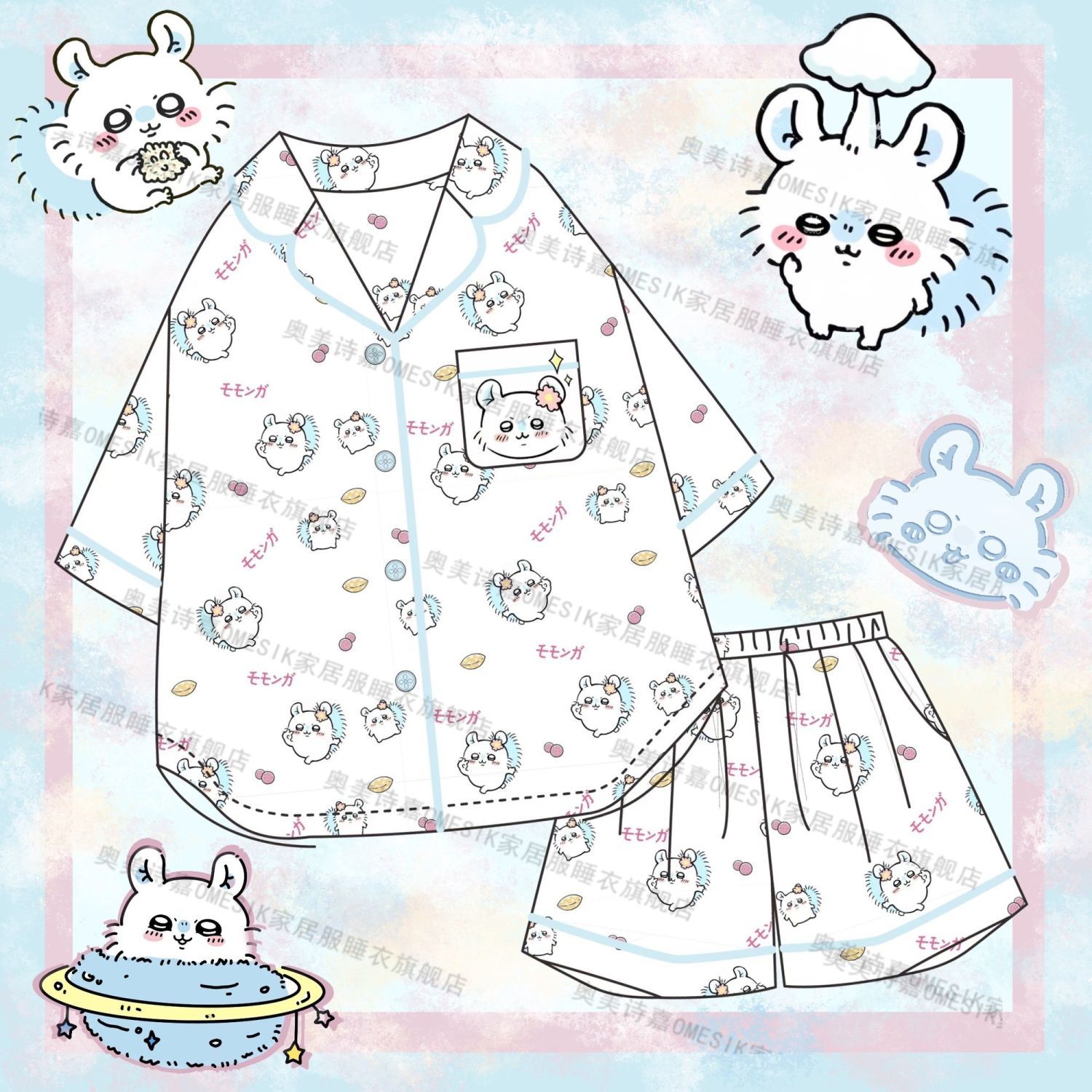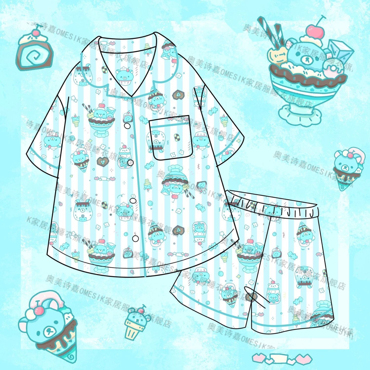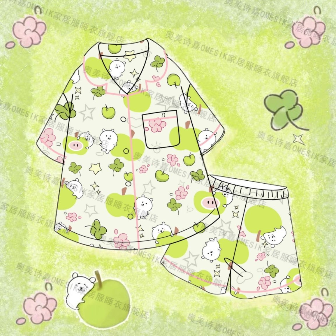 麻美吉夏用パジャマ女性用かわいいカートゥーン柄半袖短パンホームウェアセット外出着としても使用可能