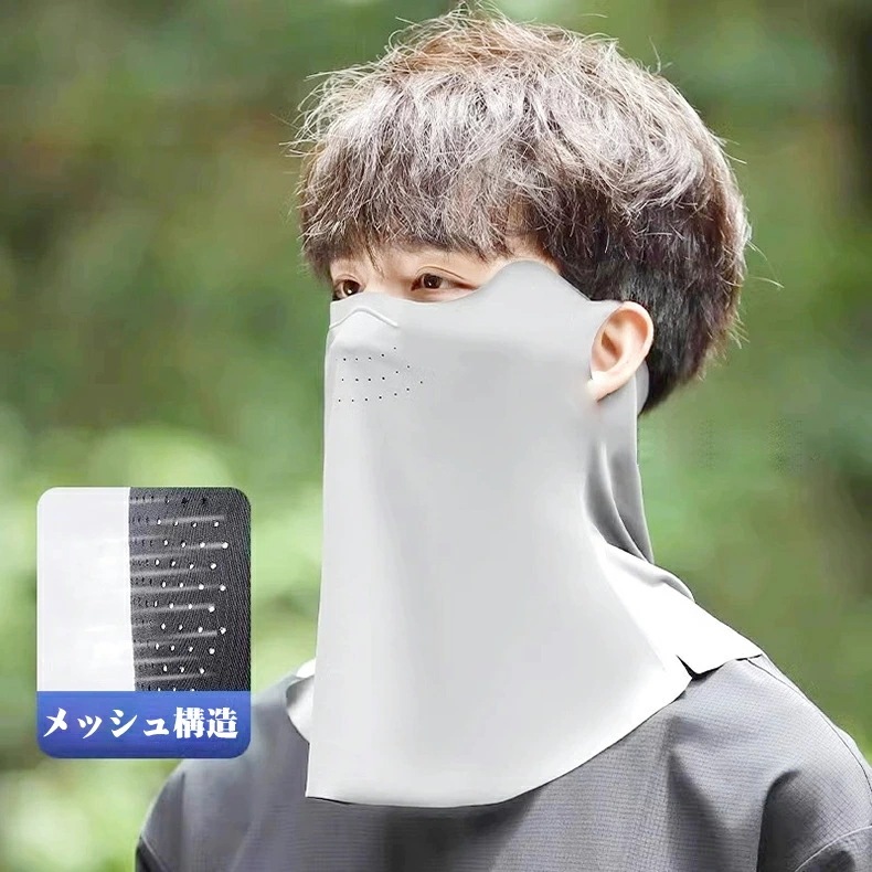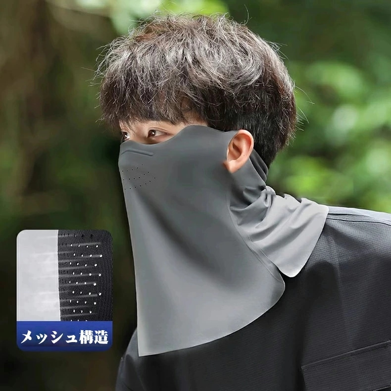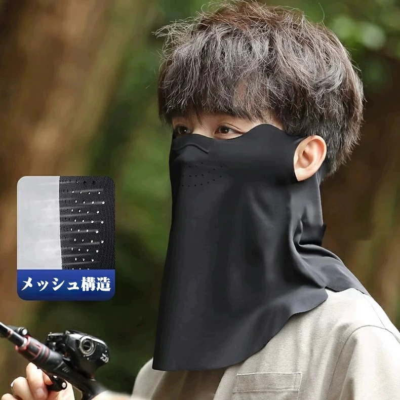 フェイスカバー 99%UVカット UPF50+ メンズ用 接触冷感 日焼け対策 冷感 ネックウォーマー 息苦しくない フェイス カバー 冷感マスク クール 紫外線防止 スポーツマスク メッシュ構造 釣