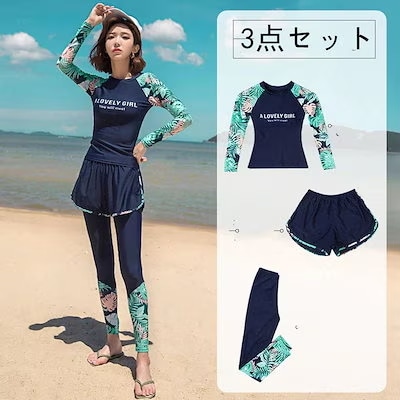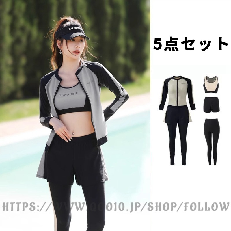 今日激安 ラッシュガード 水着 長袖 UV対策 ラッシュガードスポーツ水着 体型カバーもできるフィットネス 2/3/4/5点セット 男女兼用 韓国 ファッション水着セット 水着