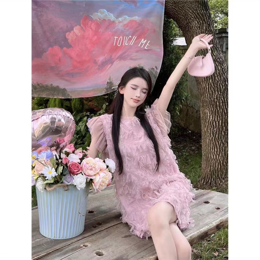 シックなセクシーな丸首のカジュアルなアンドロメダのワンピース夏のハイウエストのデザイン感のあるフリンジベストa字のスカート