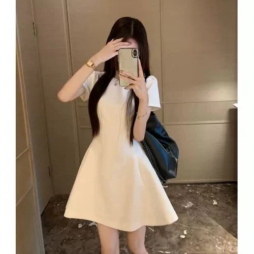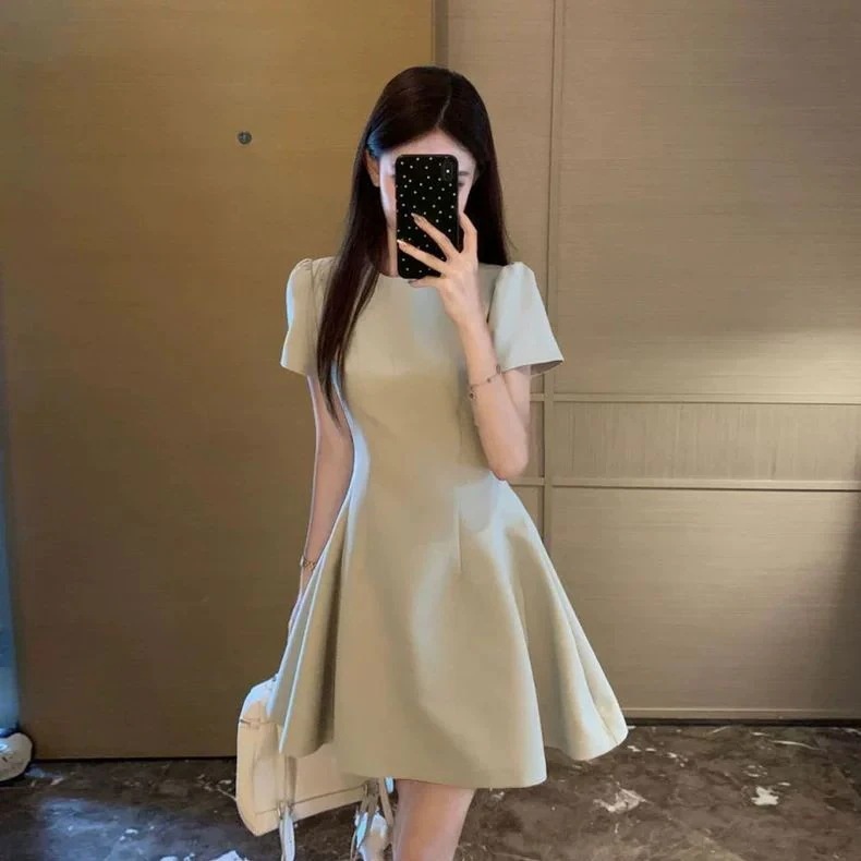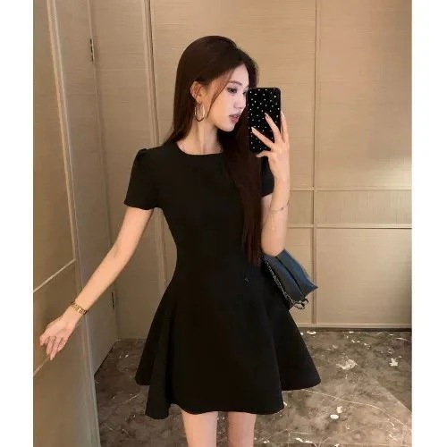 半袖のワンピースの女性の夏の新型のフランスの気質の小さい背の高級感のドレスのスカートは腰を収めて明らかにやせているショートスカートを現します