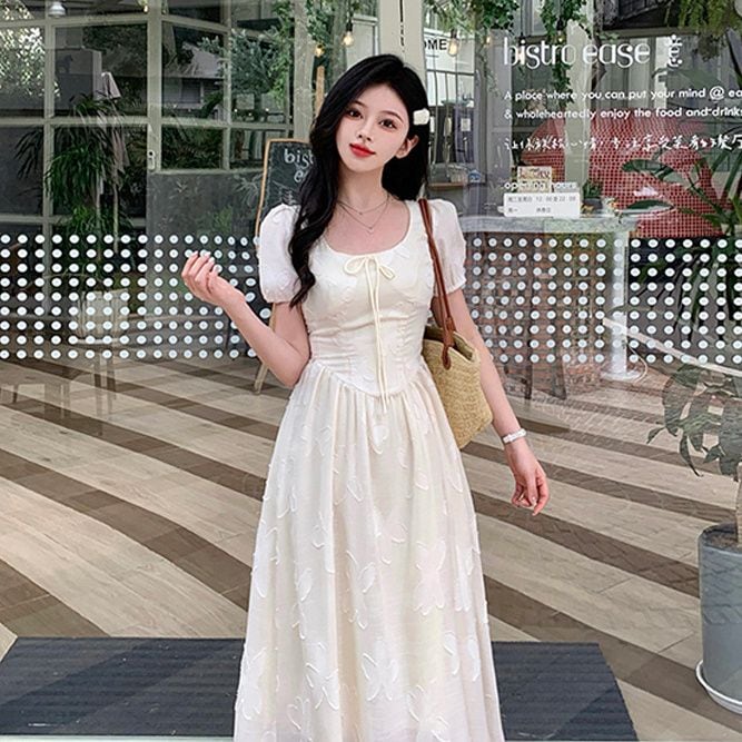 ジャカードの四角い襟のワンピースの女性の夏のフランス式の冷たい風の気質は腰を収めてやせています