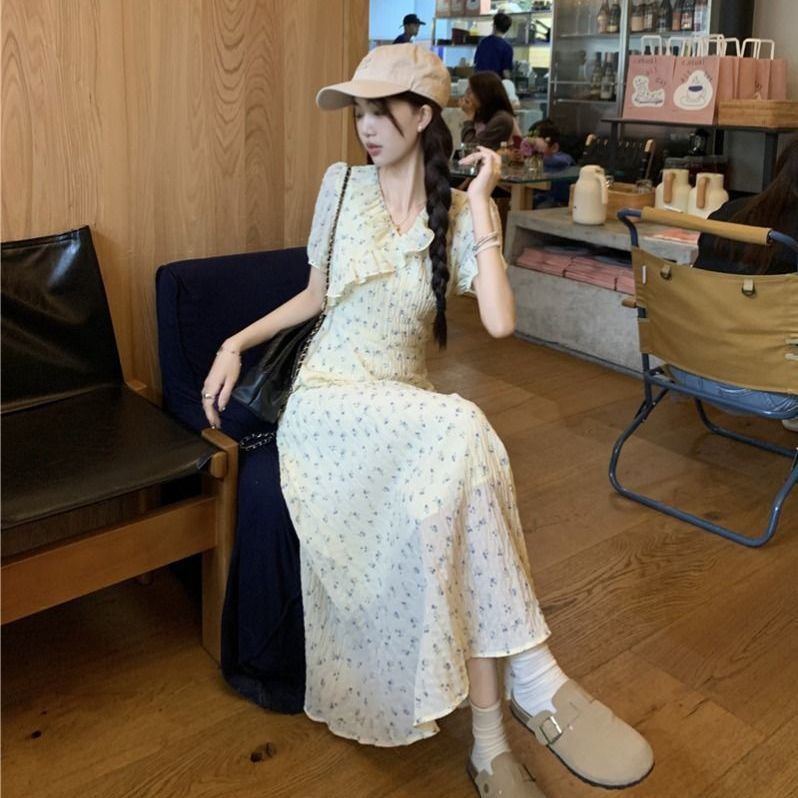 フランス風の花のスカートの気質の半袖のワンピースの女性の夏の新型は腰を収めてやせているファッションの長いスカートを現します