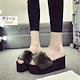 ウェッジソール サンダル 厚底サンダル ストーム レディース もこもこ ファー ビーチ ふわふわ おしゃれ コンフォート フェイクファー 厚底サンダル ウェッジソール サマー 大きいサイズ ブラック