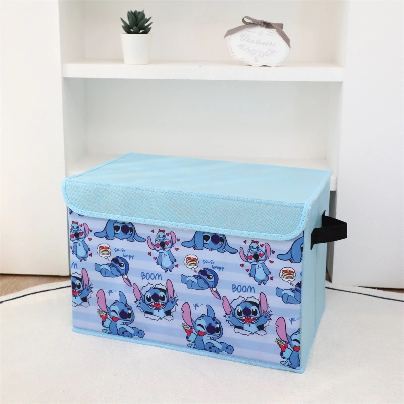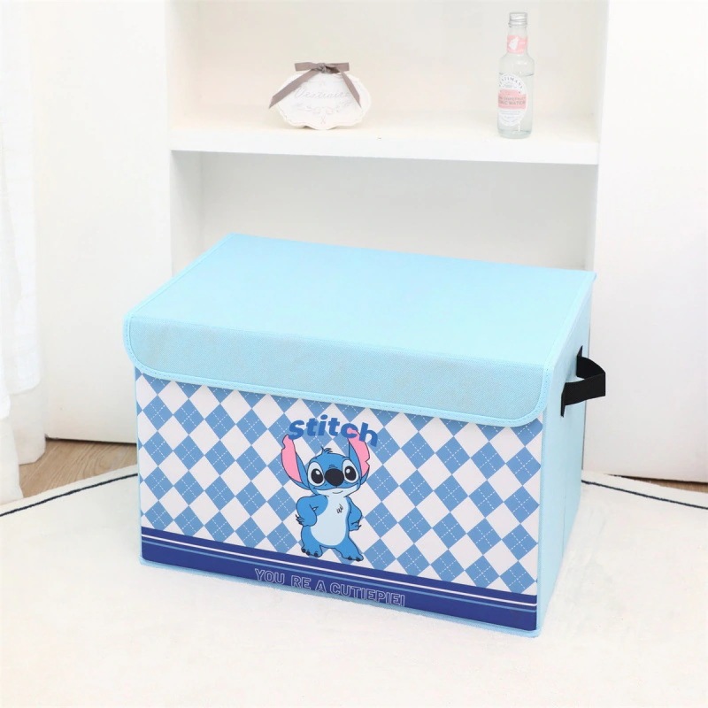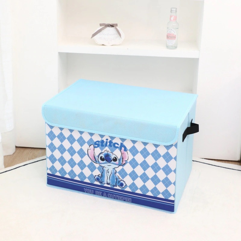 スティッチ 折りたたみ ふた付き ホコリ防止 小物 収納ボックス 男の子 かわいい ブルー スティッチ おもちゃ 収納