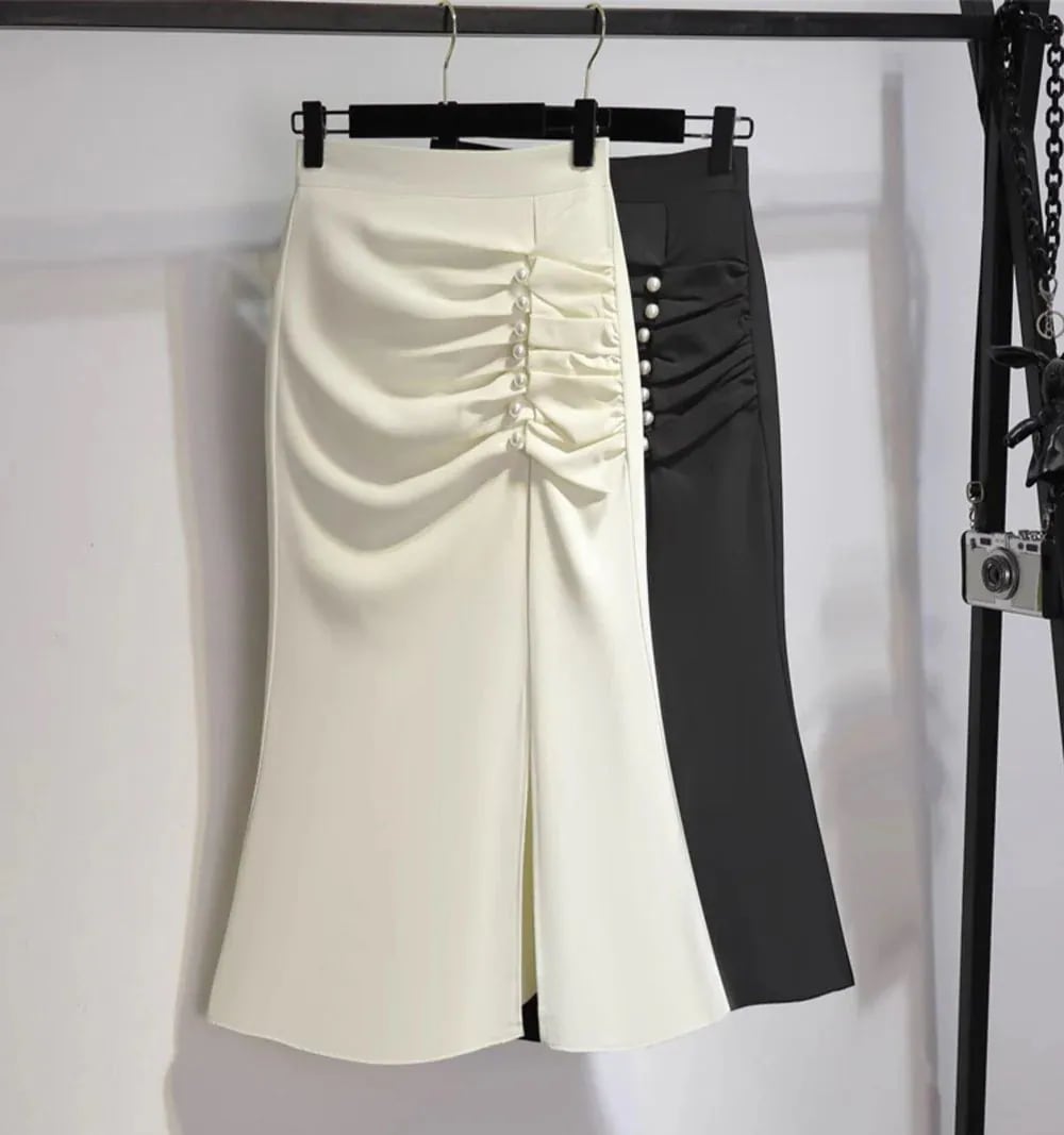 行動開始レディース スカート ミディアム マーメイドスカート ロングスカート ロング フィッシュテール フェミニン プリーツ スリット ハイウエスト 大人可愛い きれいめ 上品 エレガント ラグジュ