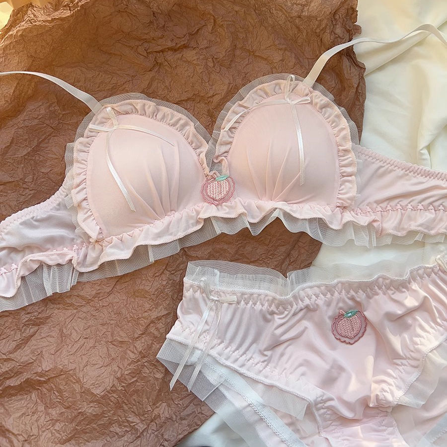 [4月の大上新]かわいいロリータ下着女性の甘いリボンコイルなし小胸が集まらないカップ文ブラセット超おすすめ ナイトブラ