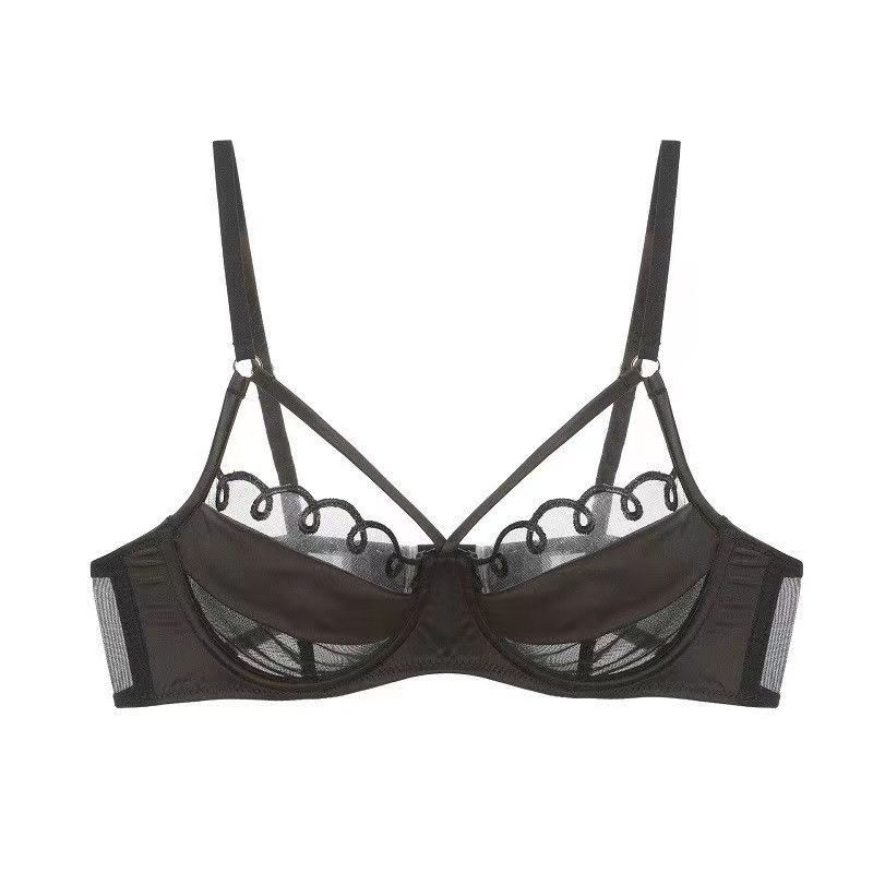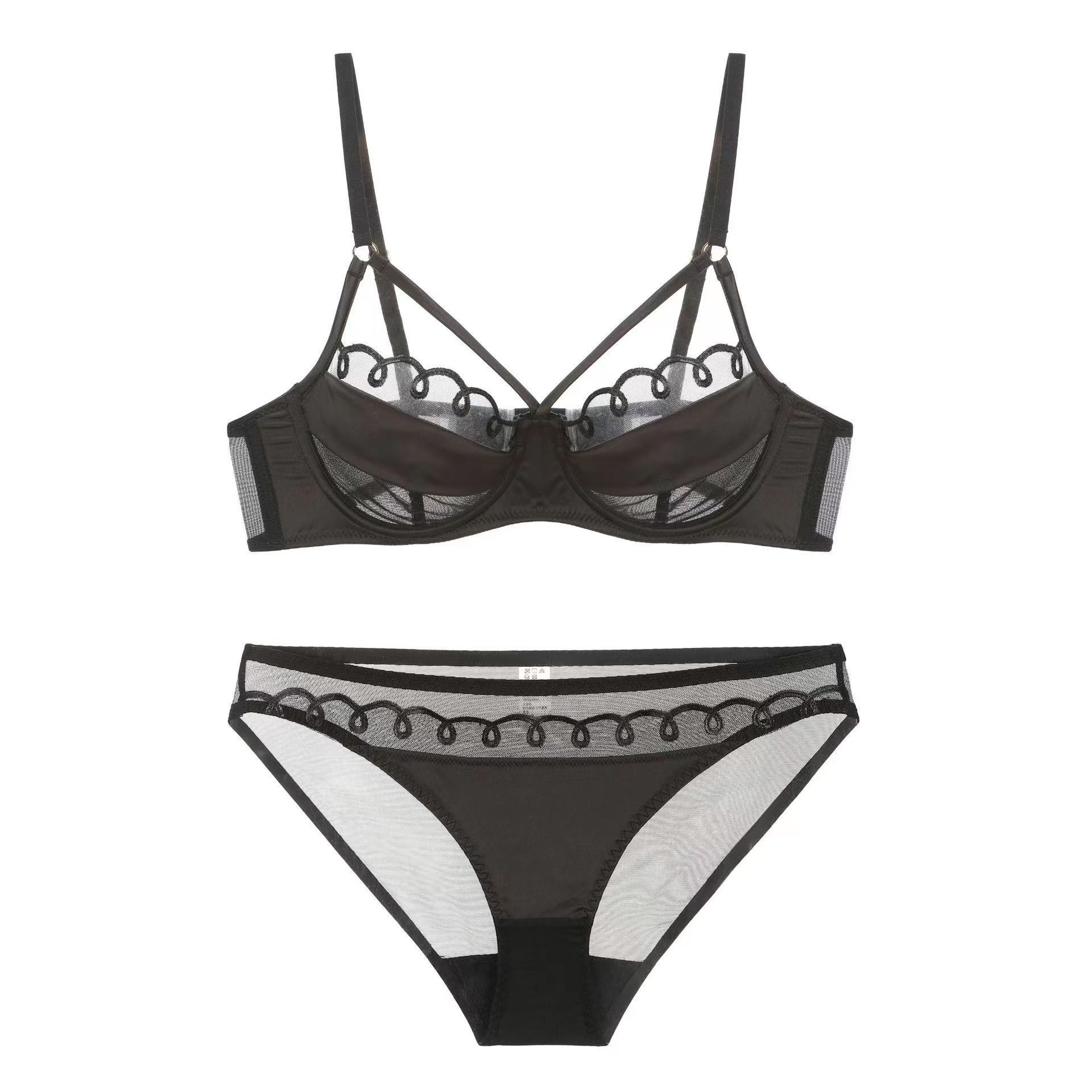 急速出荷無料 人気ブラジャー黒のソフトスチールリング下着女性セクシー刺繍レース大胸見せ小薄手純欲ブラジャーセット カップ付きインナー 快適 カップ付きインナー シームレスブラ 新調したい