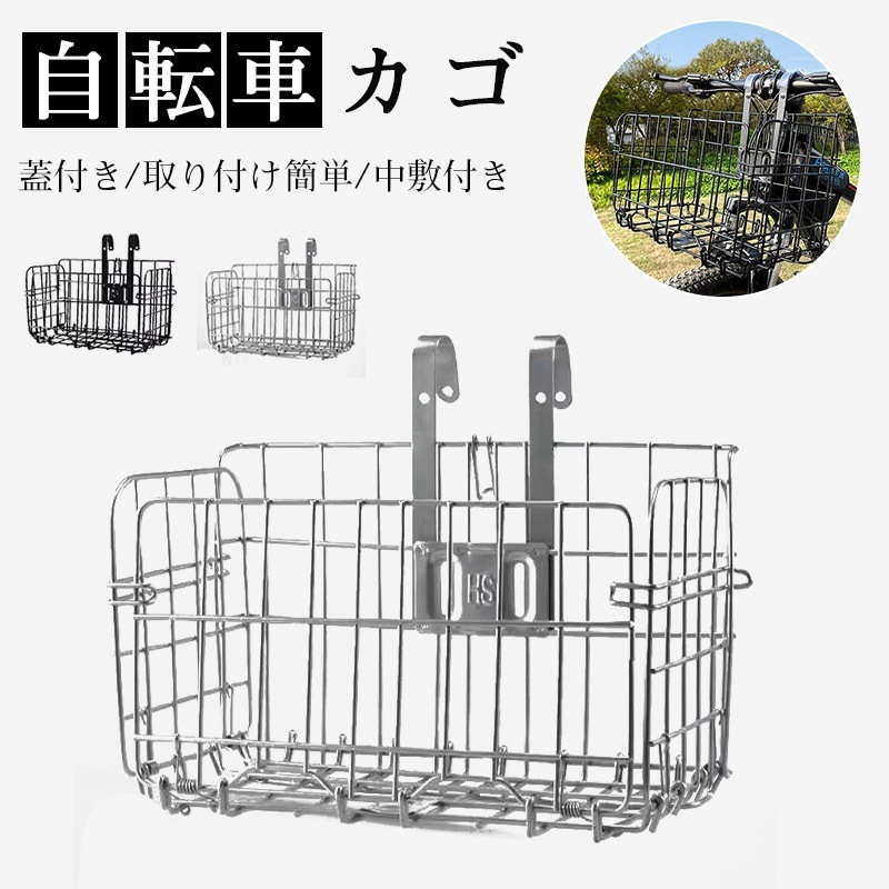 自転車新規対策/【4/15迄!クーポンで20%OFF】自転車カゴ 大きい 中敷付き 蓋付き 取り付け簡単 前かご 前カゴ 自転車バスケット 自転車用