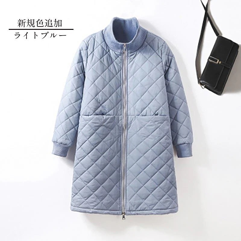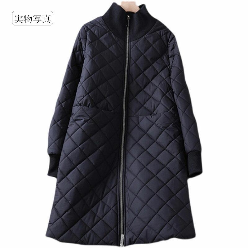 キルティングコート レディース 秋冬 アウター ロングコート 長袖 大きいサイズ 軽量 ブラック 黒 プチハイネック コーデ シンプル おしゃれ 30代 40代