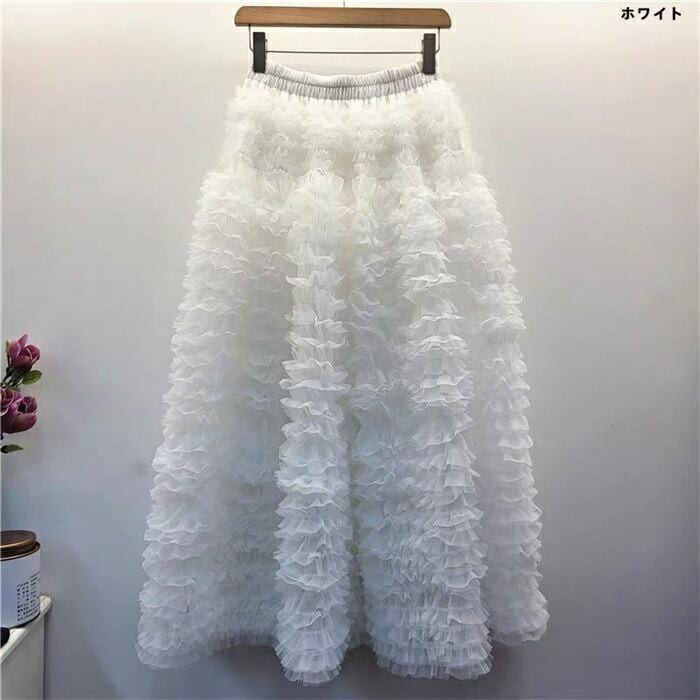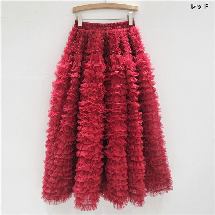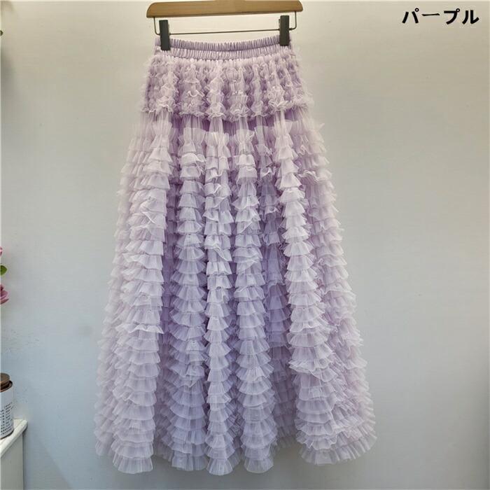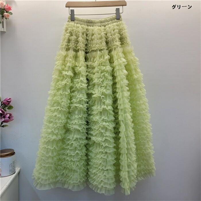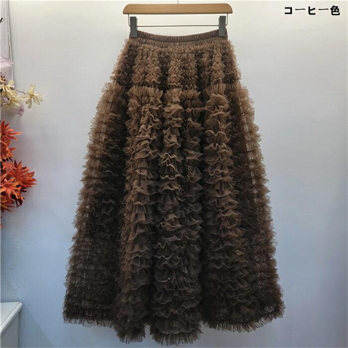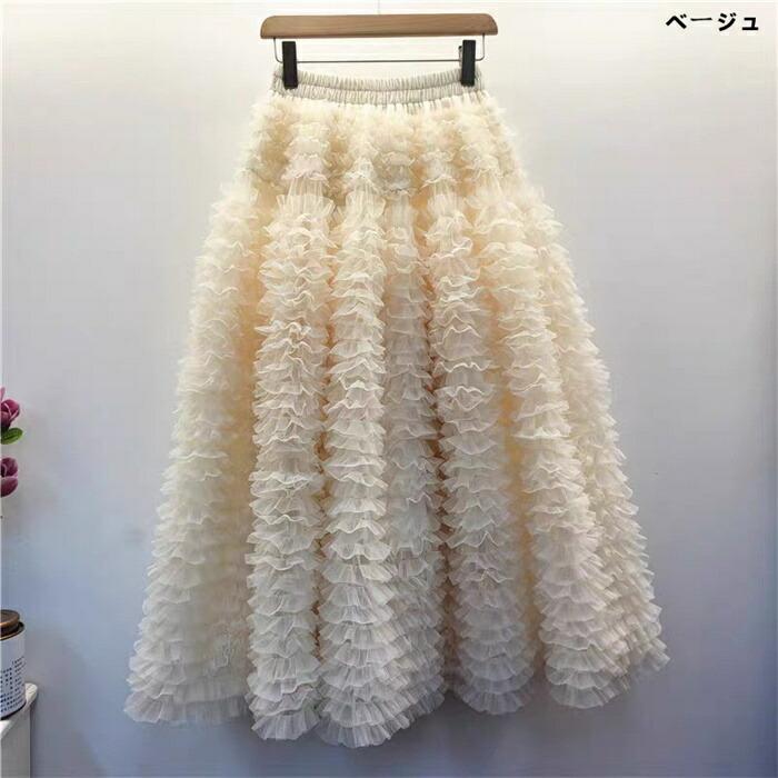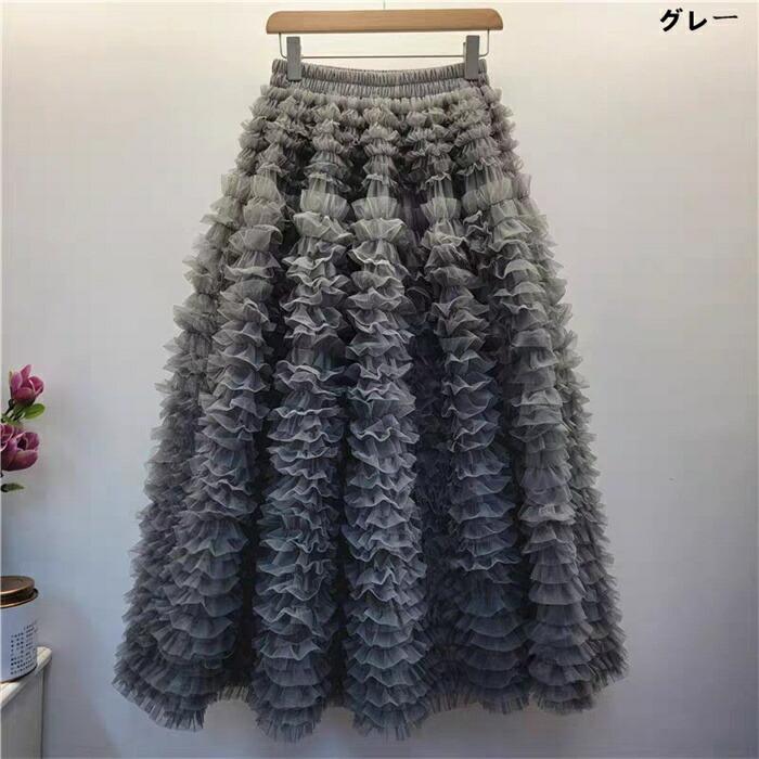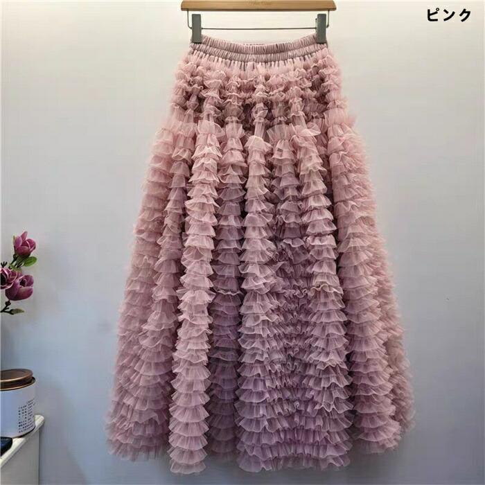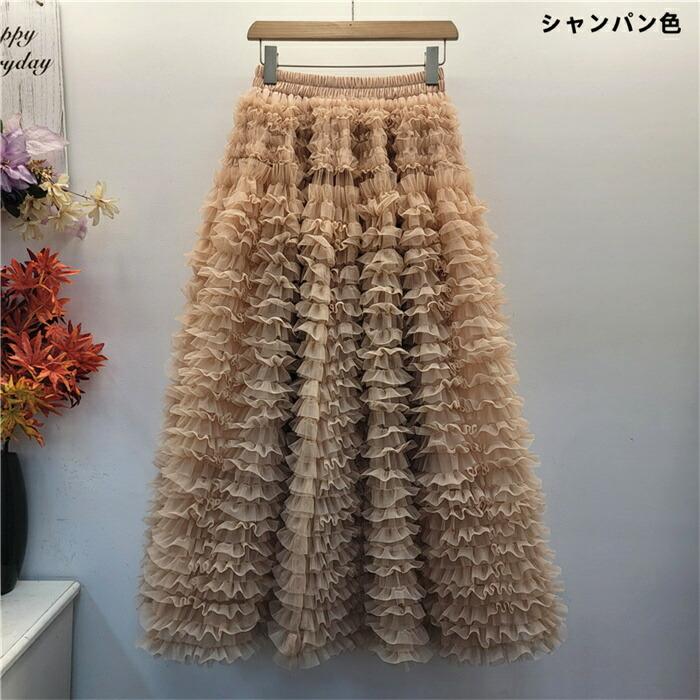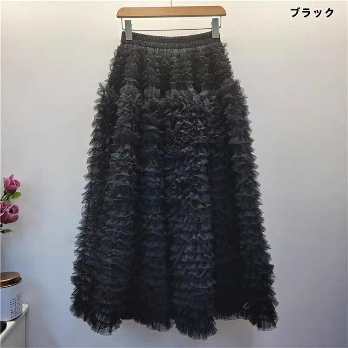 チュール スカート ロング チュールスカート ティアード スカート レディース ボトムス ロング スカート 新作 春 秋 冬 ウエストゴム 体型カバー 送料無料