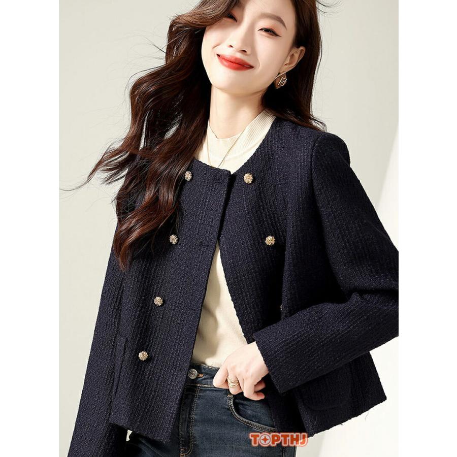ツイードジャケット レディース 40代 長袖ノーカラージャケット 黒ショット丈ツイードコート 通勤OL オフィス 結婚式 入学式 卒業式 30代 50代