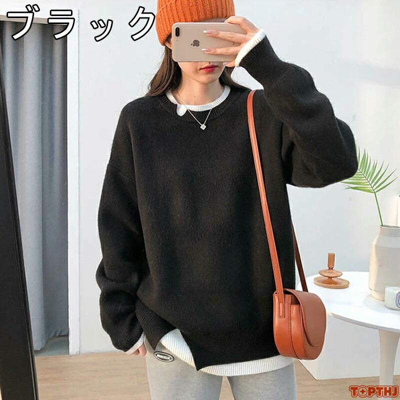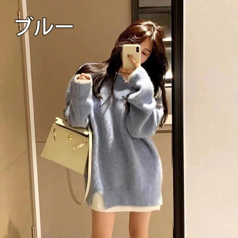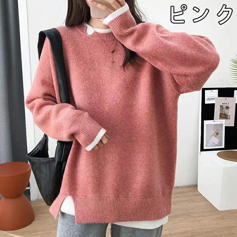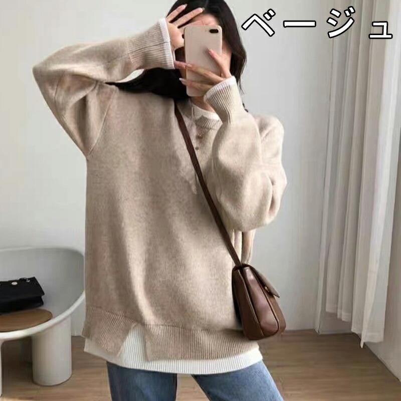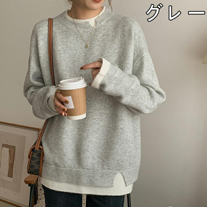 セーター ニット 重ね着 トレーナー風 チュニック セーター レディース ニット 長袖 ショート丈 大きいサイズ おしゃれ 体型カバー シンプル 春 秋 冬 韓国風
