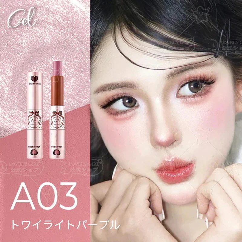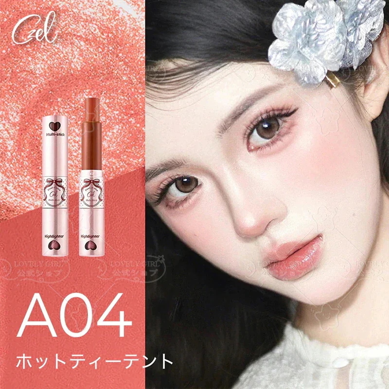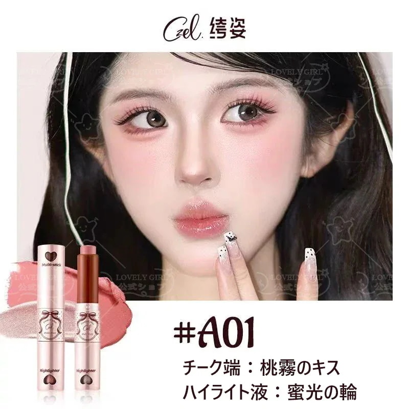 CZELCZEL【新商品发壳】2in1ハイライト/チーク/アイシャドウ・1本2役 ツートンマルチスティック  血色感&ツヤ感ハイライト 濡れツヤ固形タイプ 韓国風 ナチュラルメイク