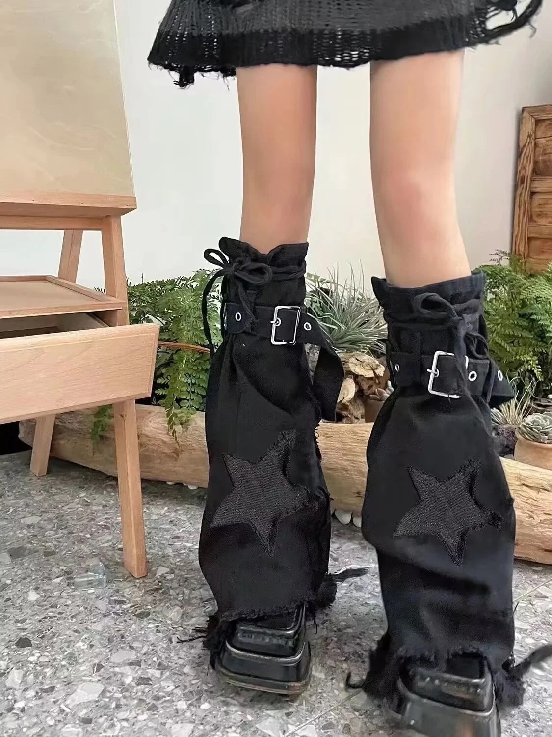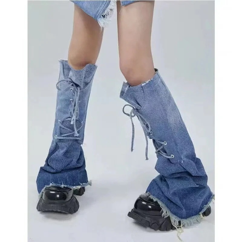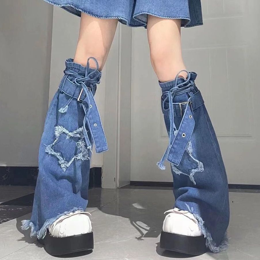 デザイン ジーンズ レッグカバー Japanese y2k サブカルチャー ストラップ パイル パイル ソックス1338