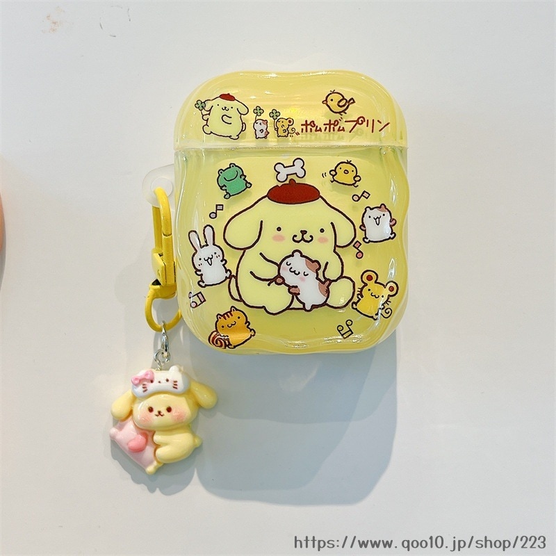 サンリオ ハローキティ クロミ シナモンロール ポチャッコ ポムポムプリン マイメロディ AirPodsケース AirPods Proケース 波 キャラクター かわいい チャーム付き 全機種対応 韓国