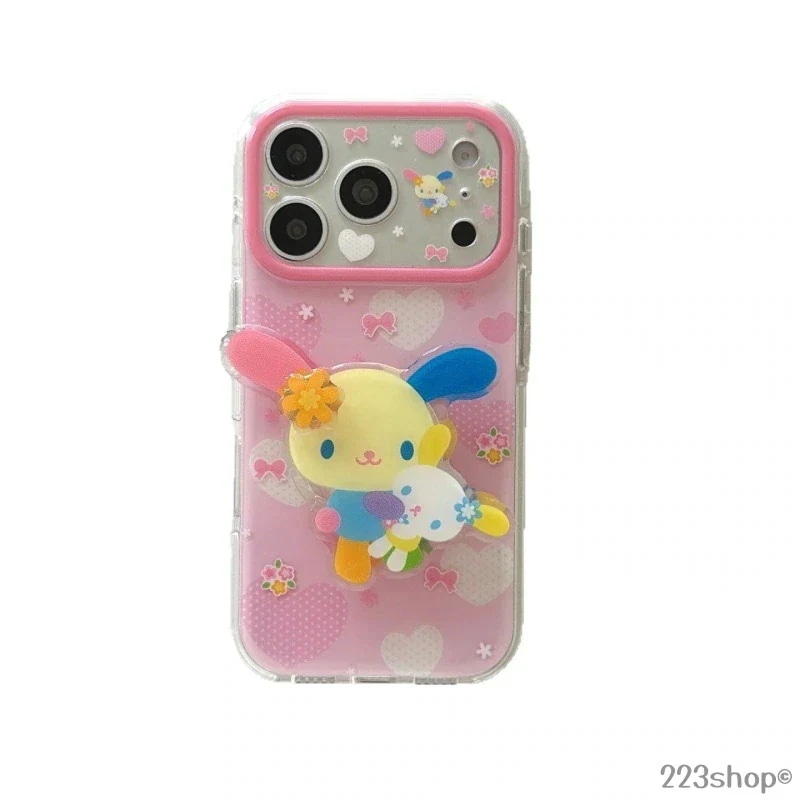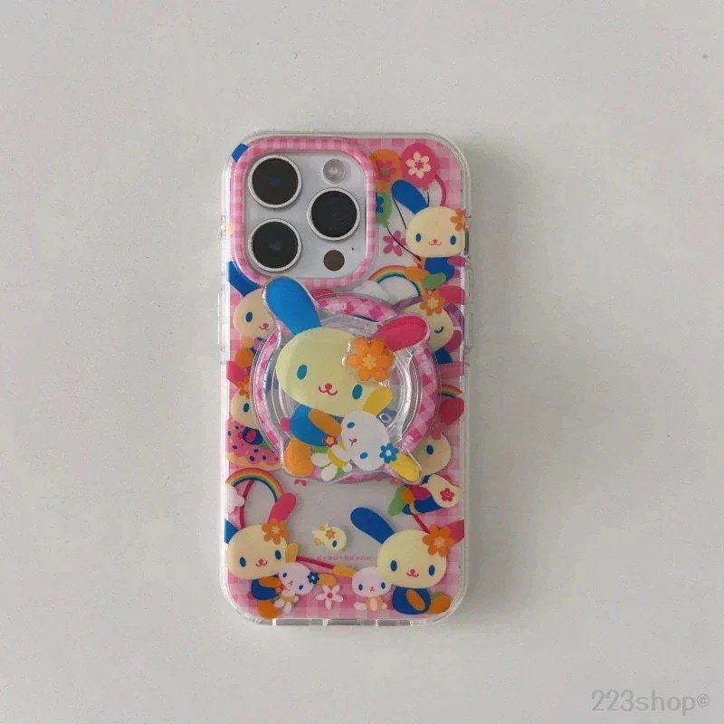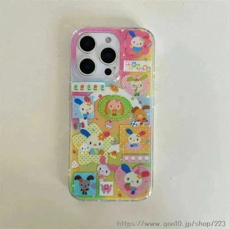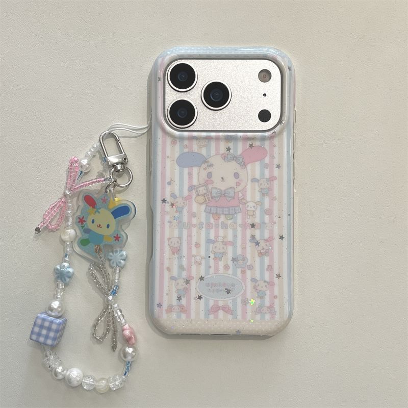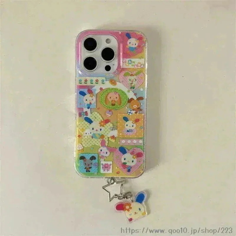 スマホケース ウサハナ うさはな iPhoneケース かわいい キャラクター シリコンケース ストラップ付き スタンド付き チャーム付き New iPhone17ケース