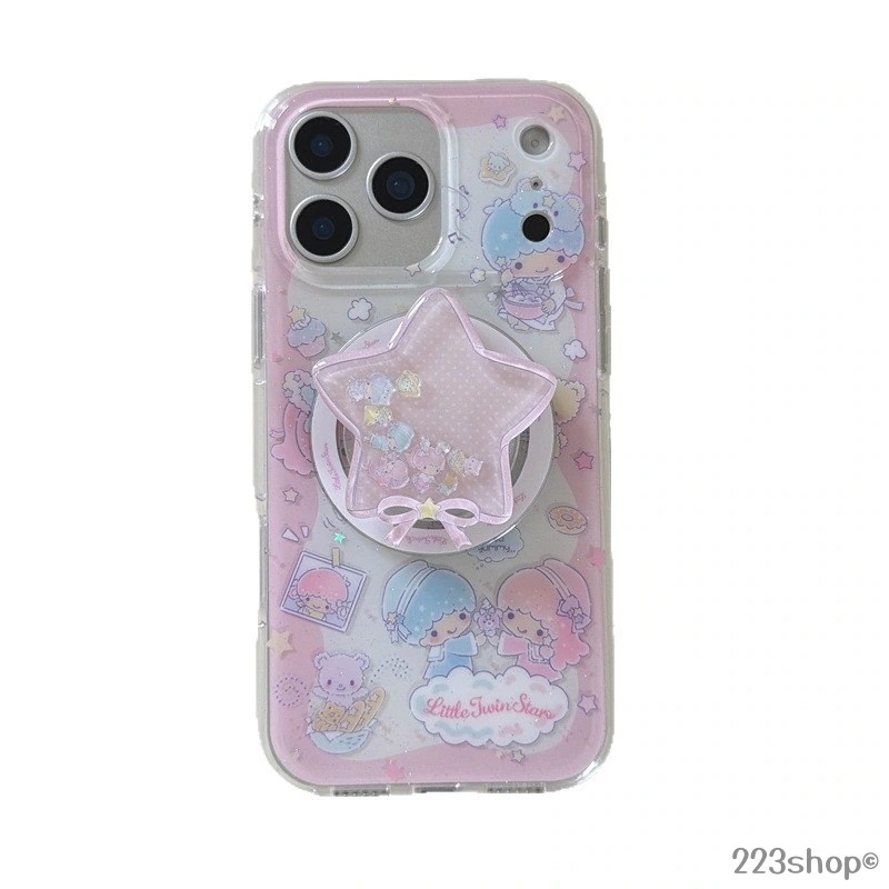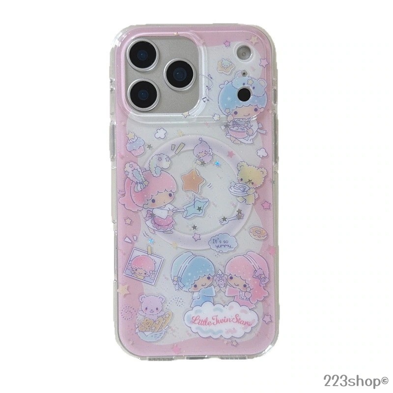 マグネット式スマホケース スタンド付き リトルツインスターズ キキララ iPhoneケース ピンク かわいい キャラクター 対応機種iPhone17 16 15 14 13 Pro Promax