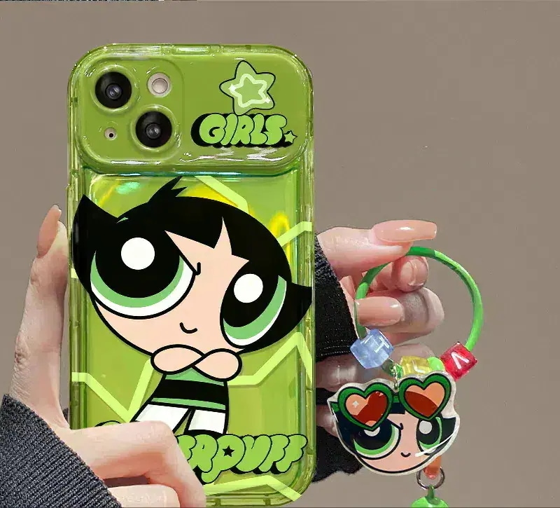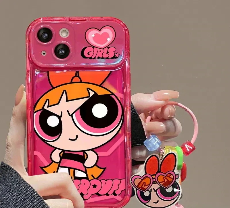 パワーパフガールズ iPhoneケース かわいい キャラクター ミラー付き ブレスレット付き 全機種対応スマホケース