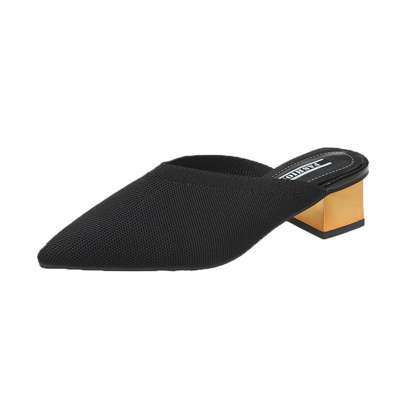 早い者勝ち シンプル ニット ミュール サンダル ファッション エレガント ポインテッドトゥ ミュール スリッパ サンダル 可愛い 厚いヒール ミュール サンダル 大きいサイズ