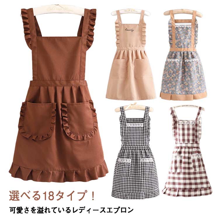 ワークエプロン フリル 無地 フリーサイズ かぶりタイプ 肩掛け おしゃれ かわいい ガーデニング 防汚 シンプル プレゼント 保育士 キッチン用品