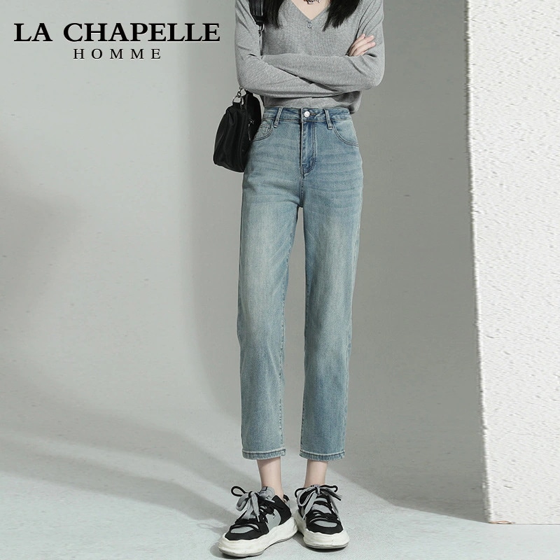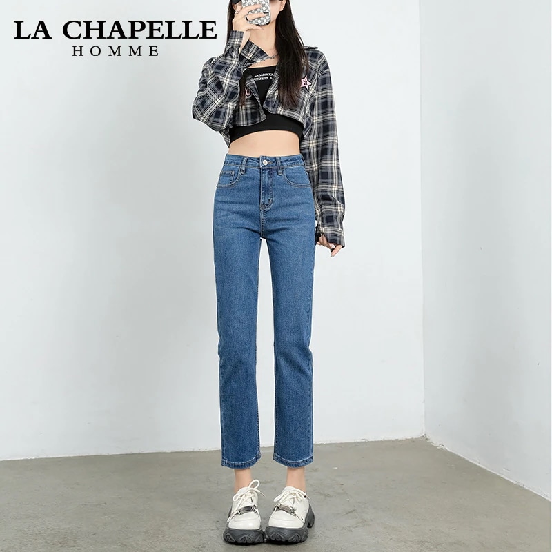 2025年夏トレンド新作 レディース9分丈ストレートジーンズ ハイウエストでスリムに見える小柄な方になバゲットシルエットのストレートパンツ