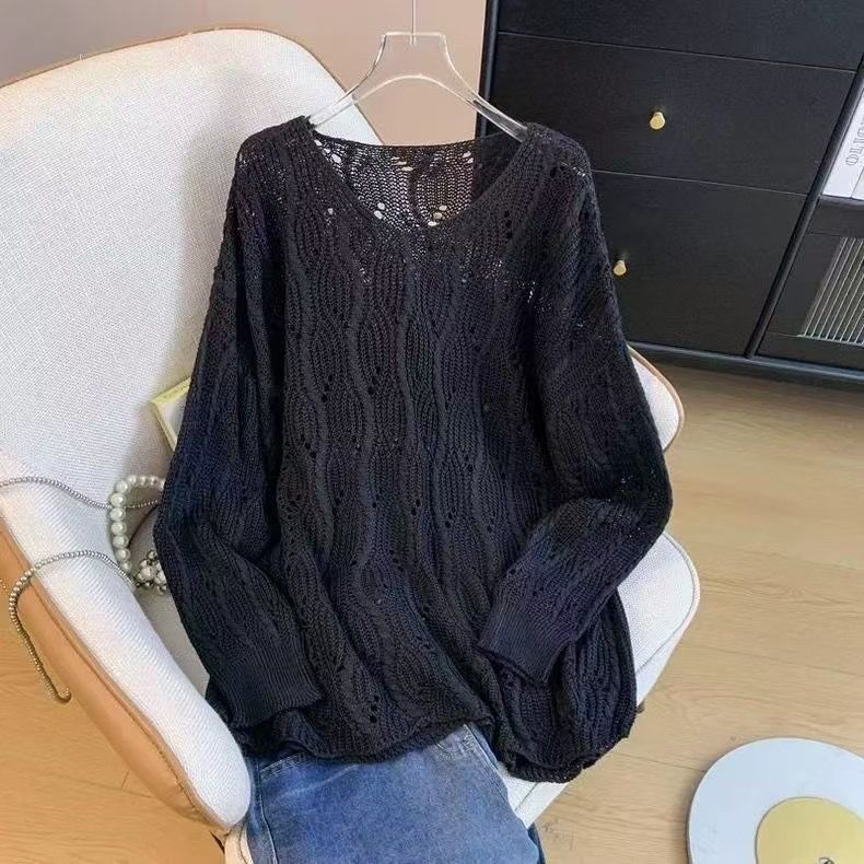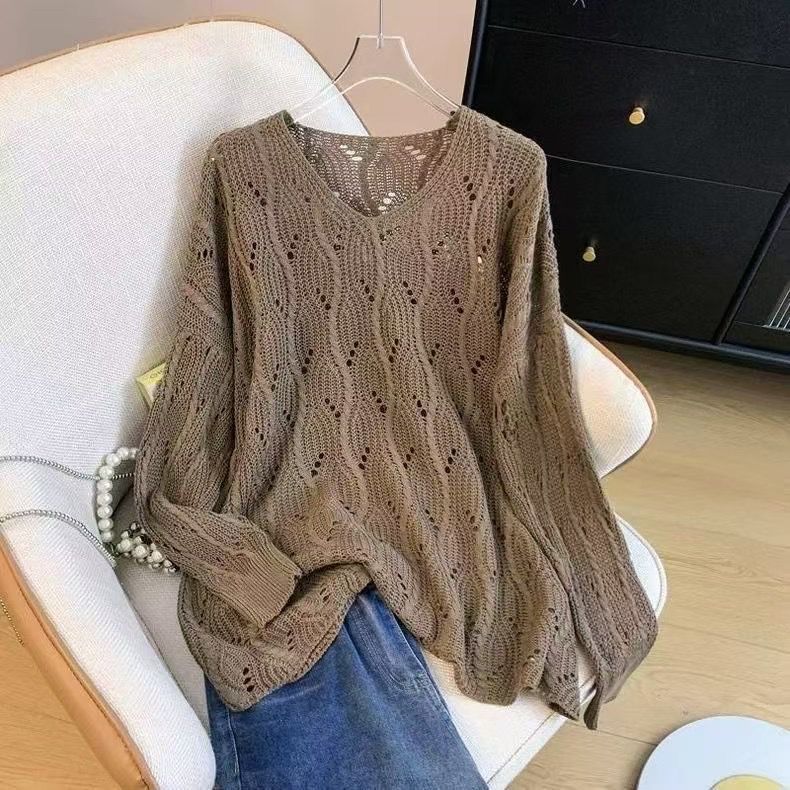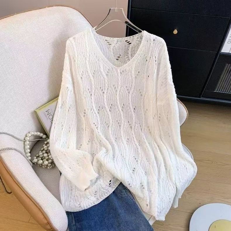 【送.料.無.料!】【新作入荷】長袖 ニット tシャツ 早春新作ゆる透かし編み チュニック 体型カバー 大きいサイズ サイズVネック UVカット 長袖トップス 高級感 着心地良いファッションアイテム