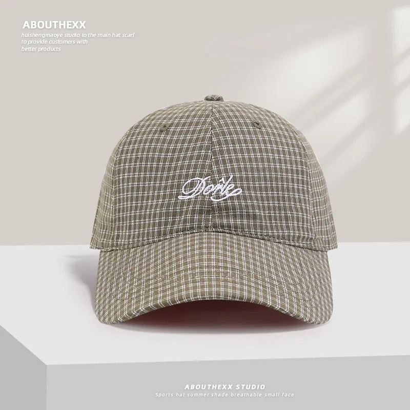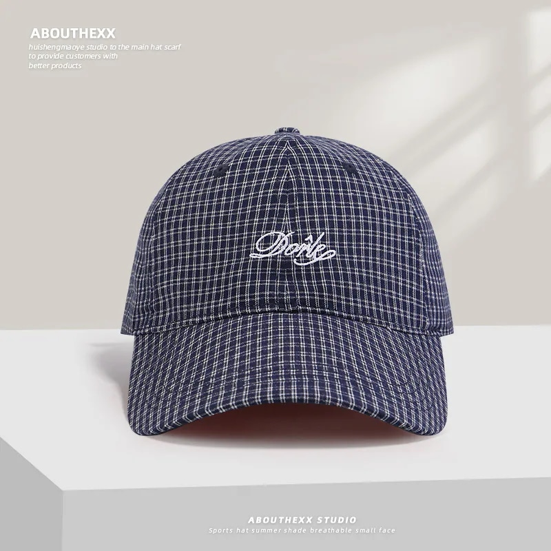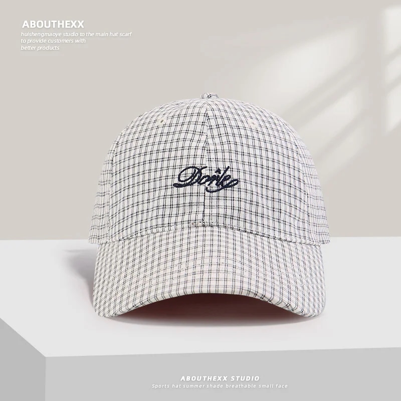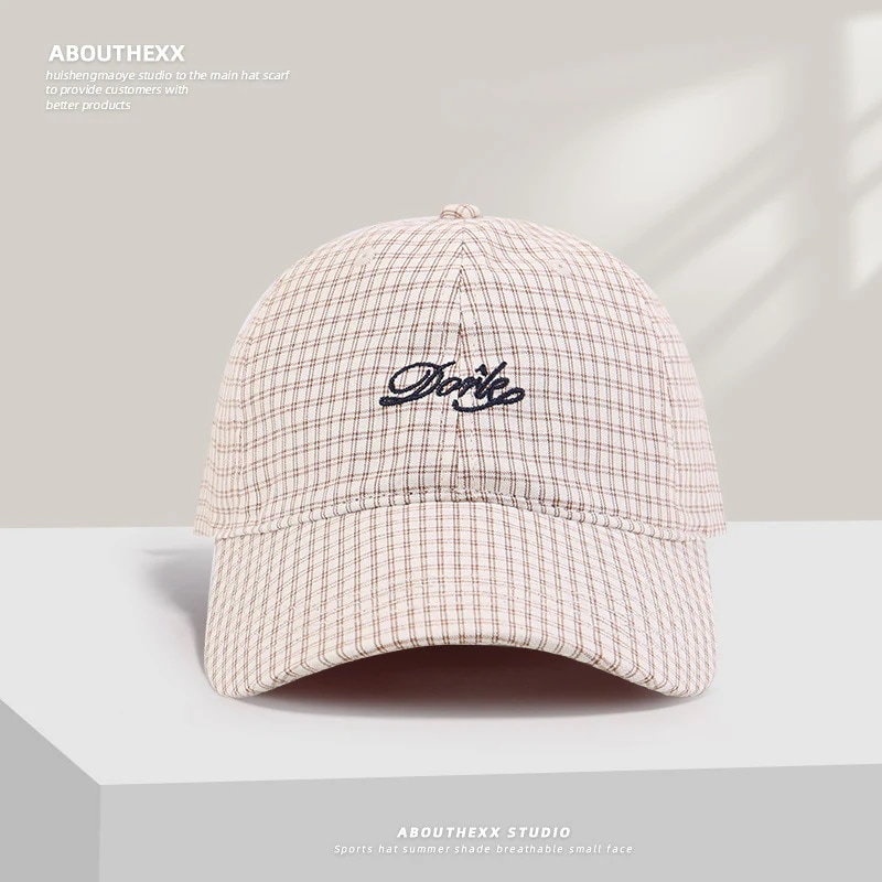 韓国発の新作チェック柄とアルファベット刺繍のキャップ夏向けつば広ソフトトップのベースボールキャップで小顔効果