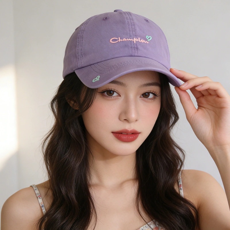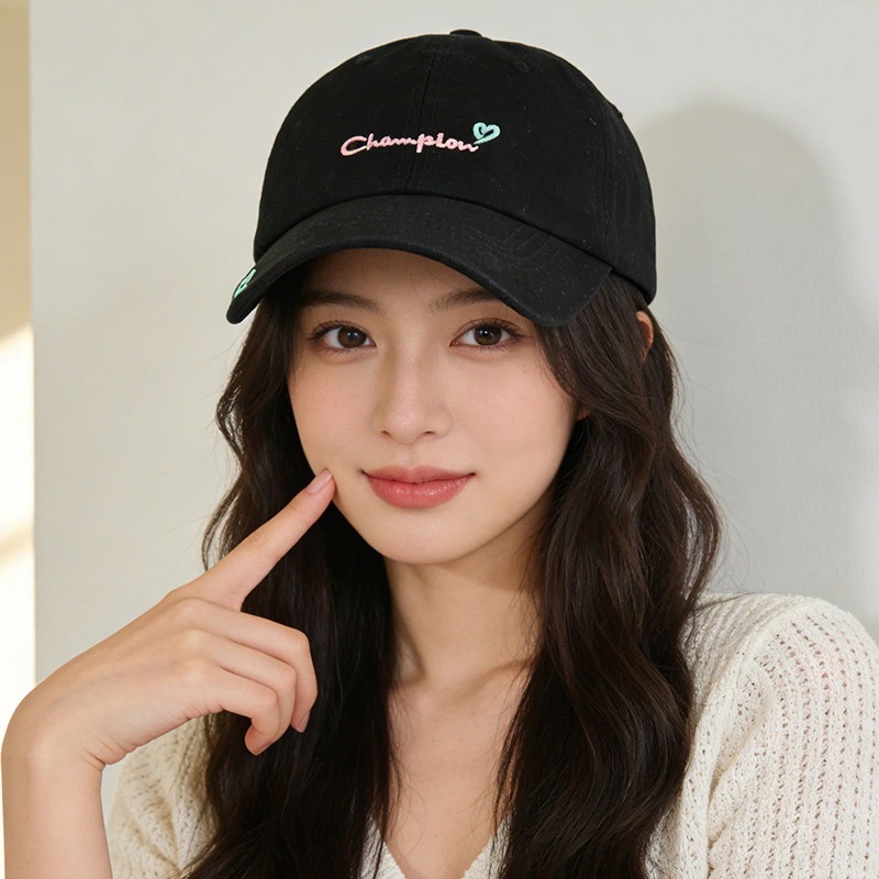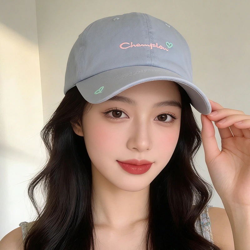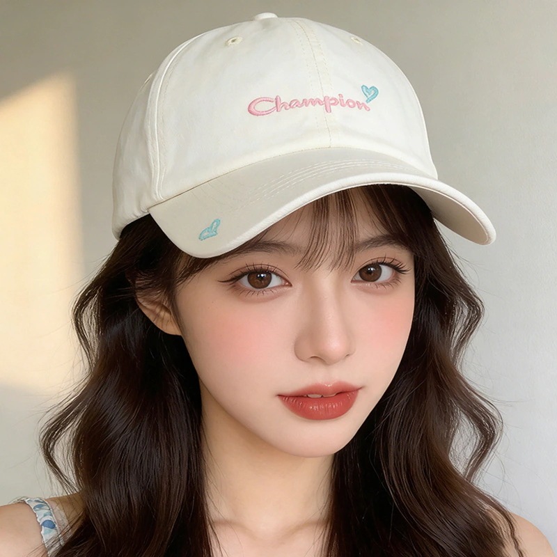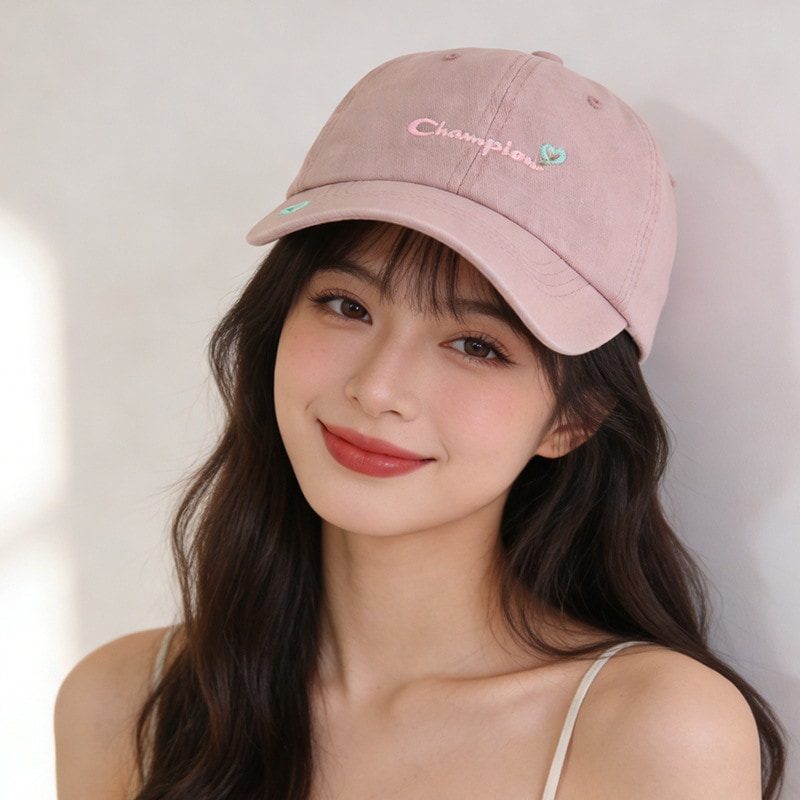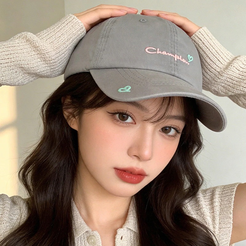 韓国風・ニッチ・キュート・ハート刺繍入りベースボールキャップ アート系でどんなスタイルにも合わせやすい すっぴんでも顔隠し可能なソフトトップ 爽やかで若々しい印象のキャップ
