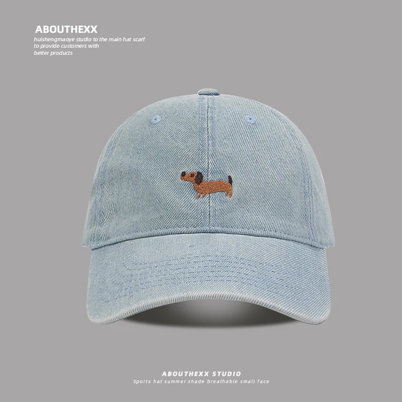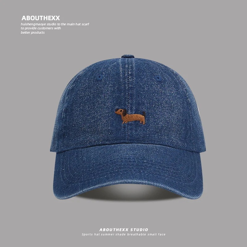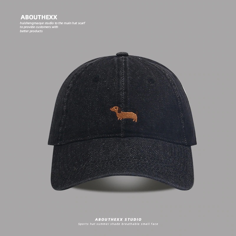 2025年新作 ダックスフンド刺繍入りデニムキャップ レディース 春夏用 カジュアル・小顔効果・ソフトトップ・ベースボールキャップ メンズ