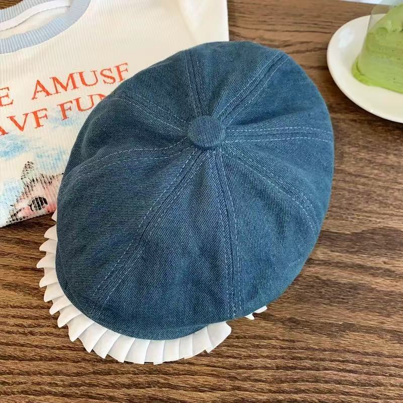 個性的なレース付きデニムベレー帽 レトロなバレエ風 ニッチなベレー帽 レディース 和風スタイル ワークキャップ キャップ