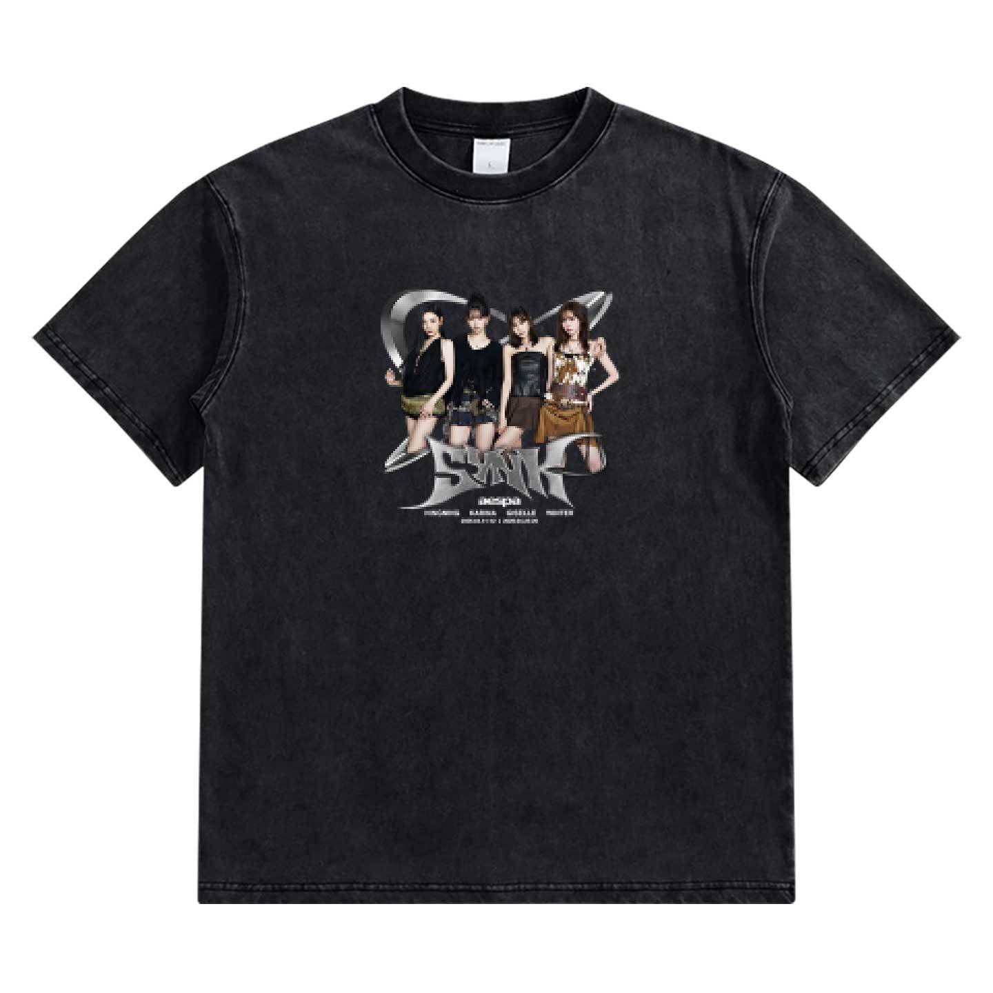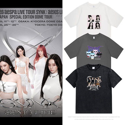 2026 aespa 日本ツアー「SYNK:aeXIS LINE」同款プリントTシャツ 半袖 綿100% 夏用 カジュアル オーバーサイズ 応援グッズ 男女兼用