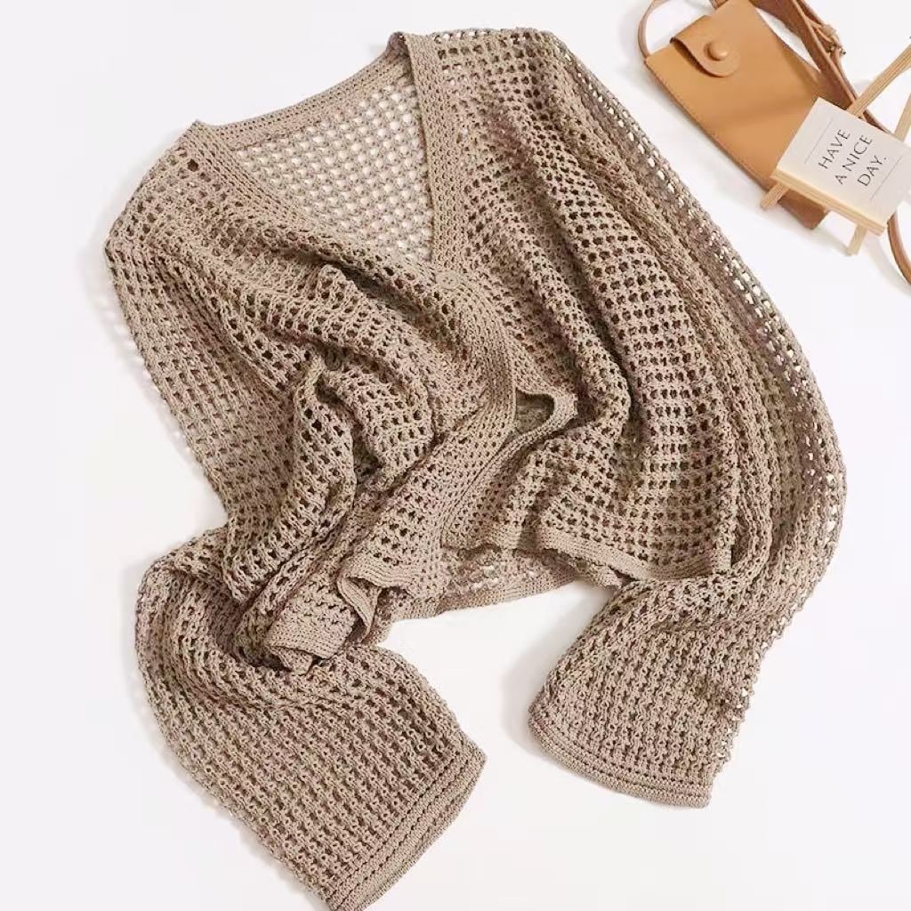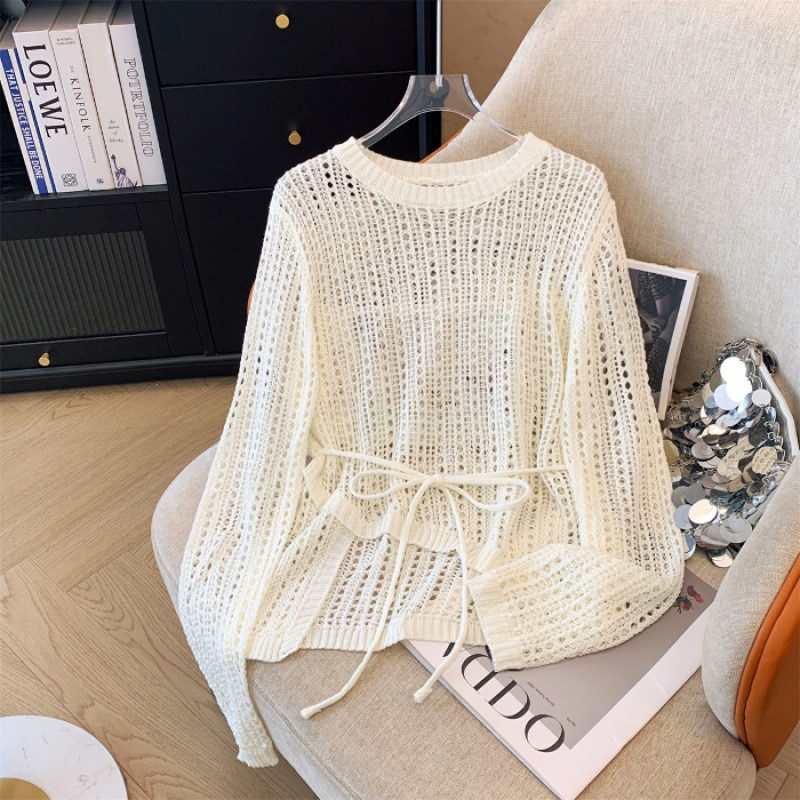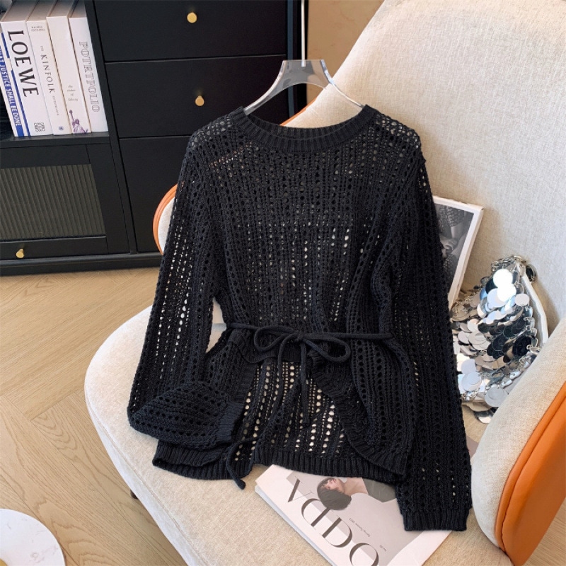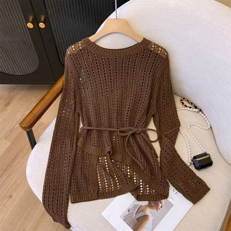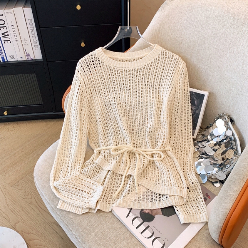 【送.料.無.料!】【2026新入荷】ブラウズ春夏新作ゆる透かし編みミンチュニック長袖ニット体型キャバレー大きいサンズVネックス/ラウドネックスUVカット長袖トップス高級感着心地良いファンシーアイテ