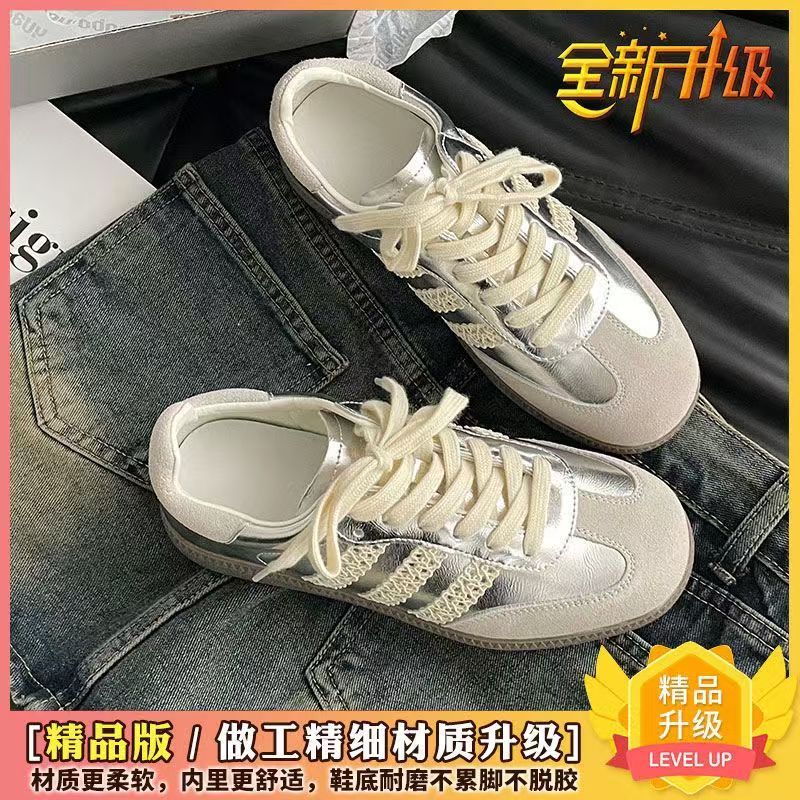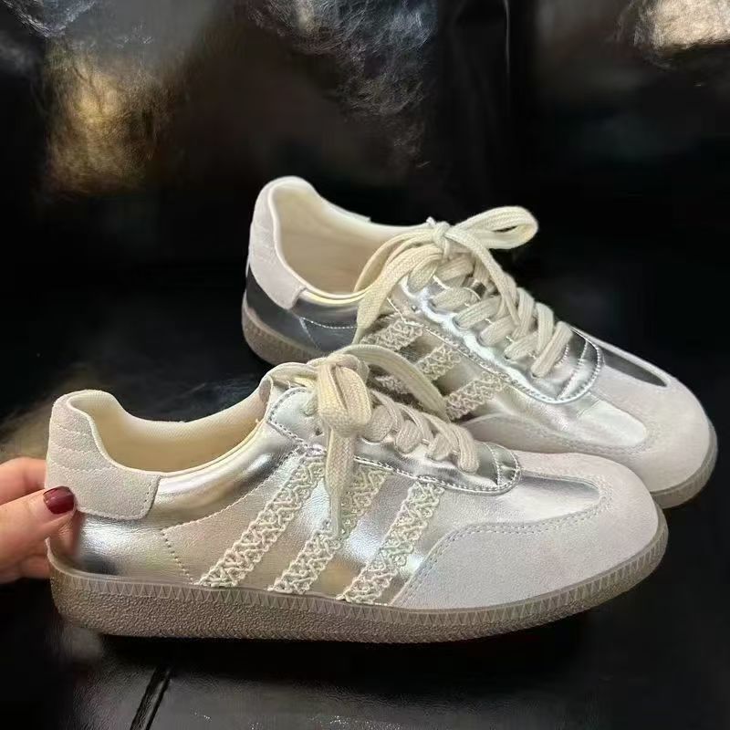 レトロな銀色の靴の運動靴の徳訓の靴の女性の阿甘靴の運動靴の春の夏の新型の百合のレジャー ワンピースパンツトートバッグ