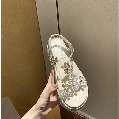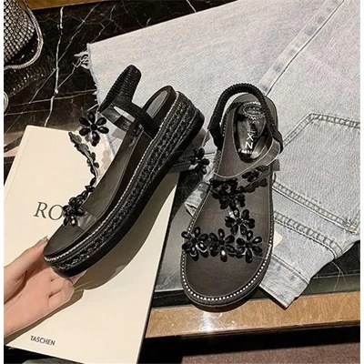 雰囲気のある佇まい 激安セール 大 ヤングスタイル 小さい新鮮な お出かけ サンダル ファッション 2021年夏 ニュースタイル カジュアル フラワーズ ラインストーン ウェッジヒール