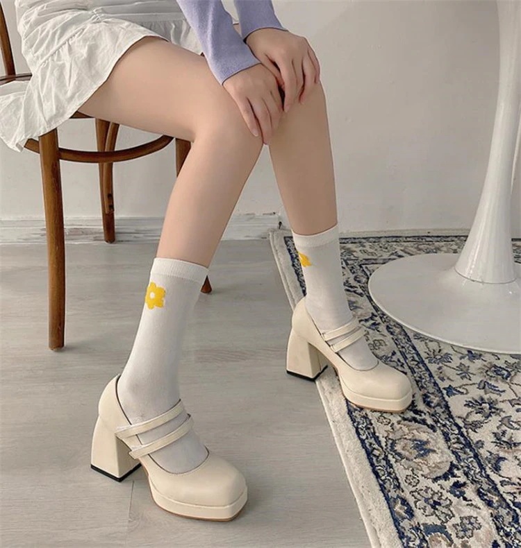 早い者勝ち レトロ メリージェーンの靴 厚いヒール スクエアトゥ 防水プラットフォーム