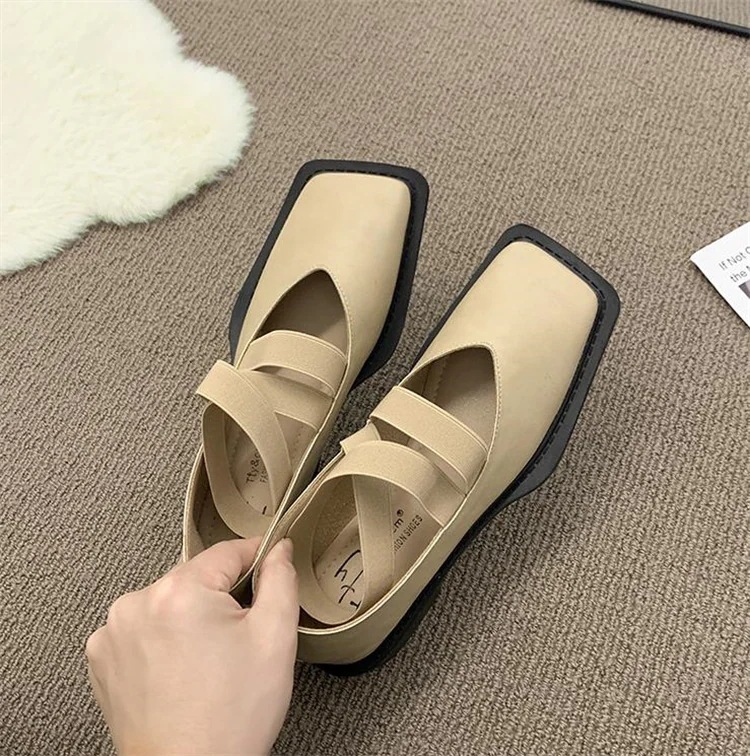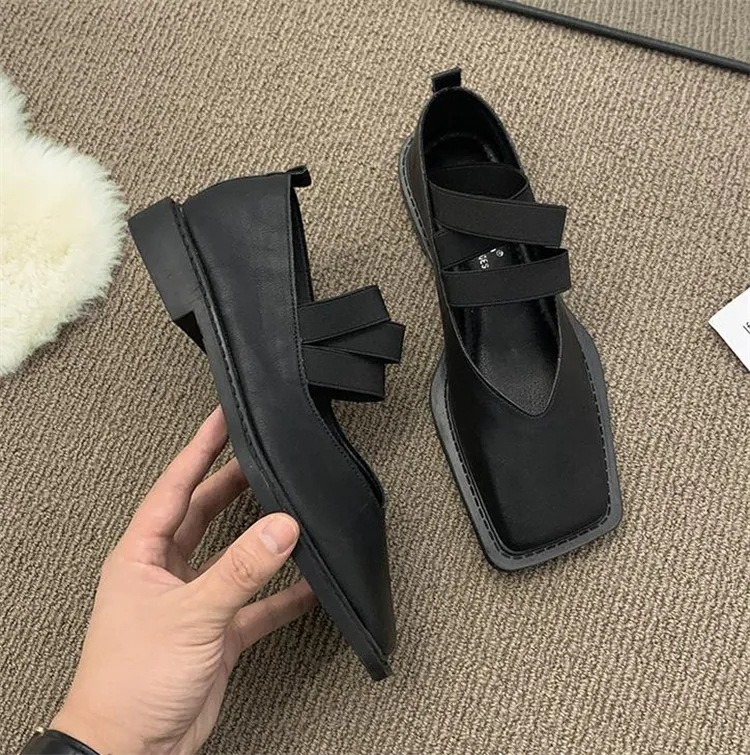 韓国ファッション フラット 怠惰な風 大 ヴィンテージ シングル スクエアトゥ