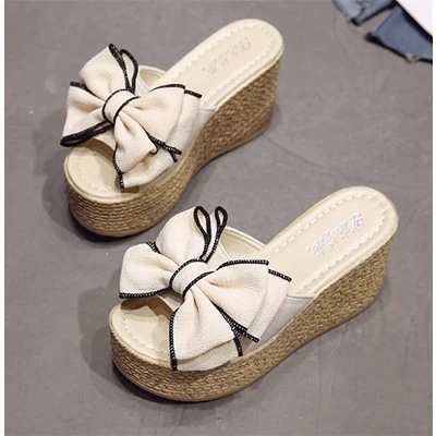 品質良い!店舗お勧め! 早い者勝ち スリッパ 夏 気質 ファッション 新2020年 オシャレ 蝶結び カジュアル あつぞこしゅーず 大 ウェッジシューズ 百掛け フラワー