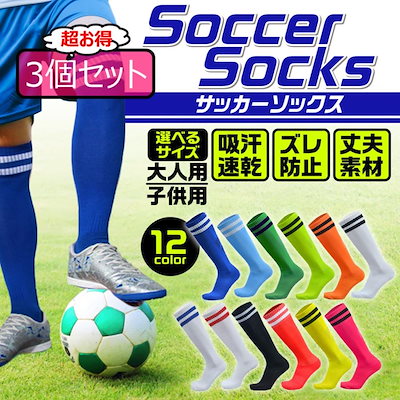 サッカーソックス ジュニア 膝上 無地 3足セット ストッキング 靴下 大人 子供 滑り止め フットサル スポーツ