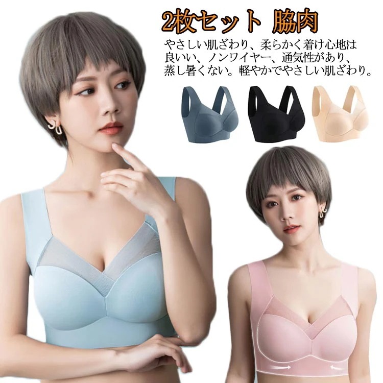 背中 スッキリ 無縫製 ブラ 脇高 シームレス 胸が小さく見える 2枚セット!ノンワイヤー 小さく見せるブラジャー ワイヤレス 大きな胸を小さく見せる ブラジャー 下着 ブラ 脇肉 ブラジャー 胸を小