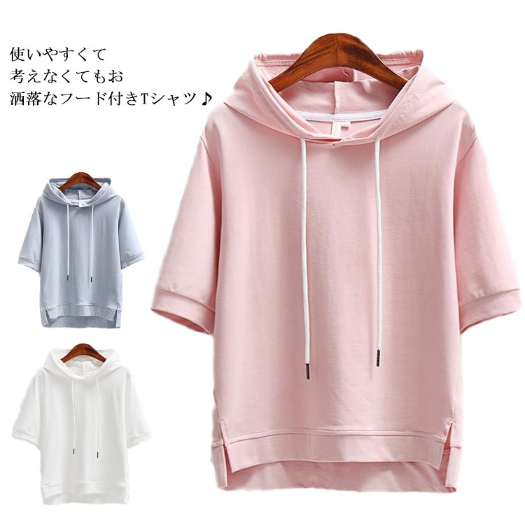 Tシャツ レディース 半袖 パーカー 五分袖 ゆったり カットソー トップス 半袖 カジュ