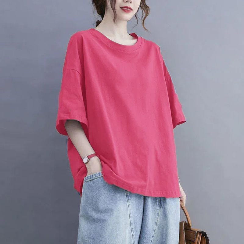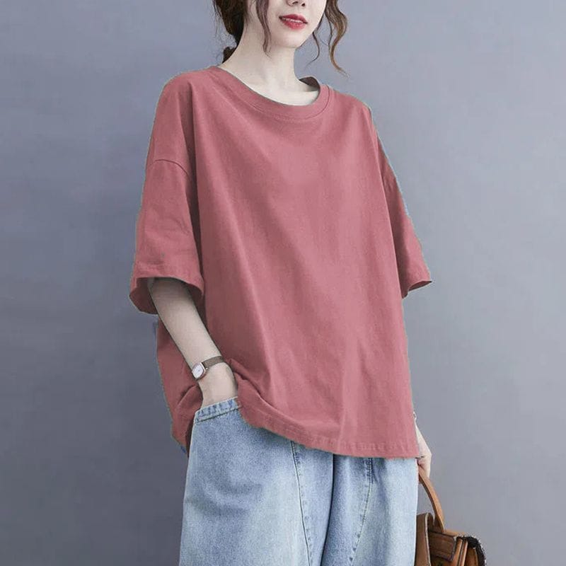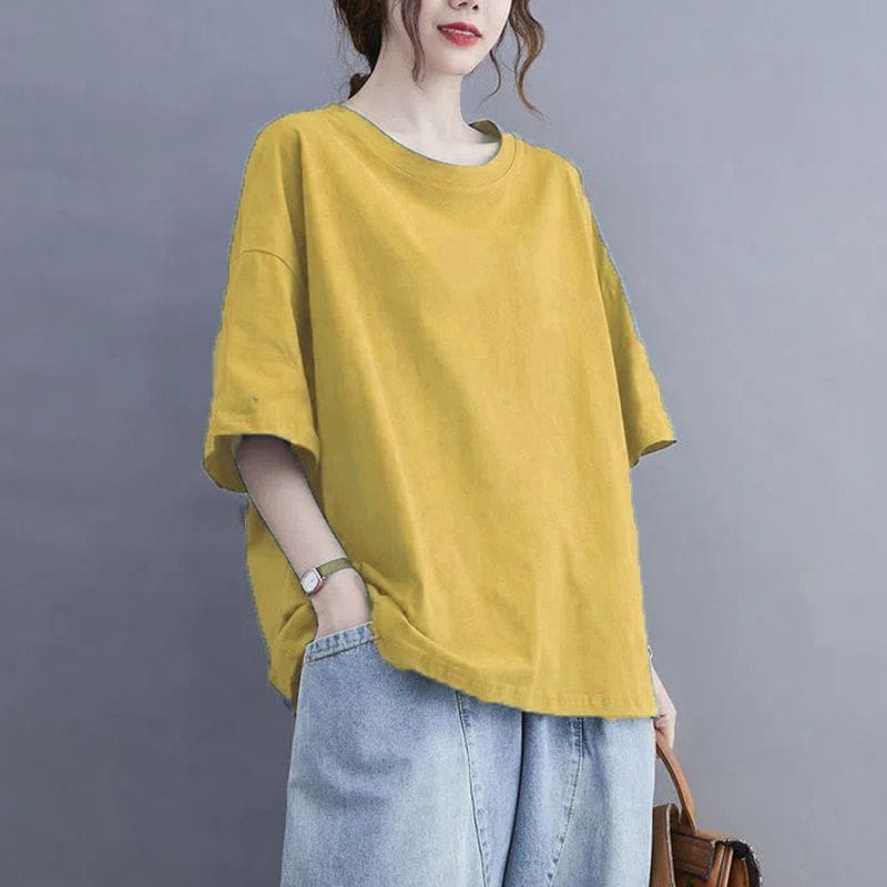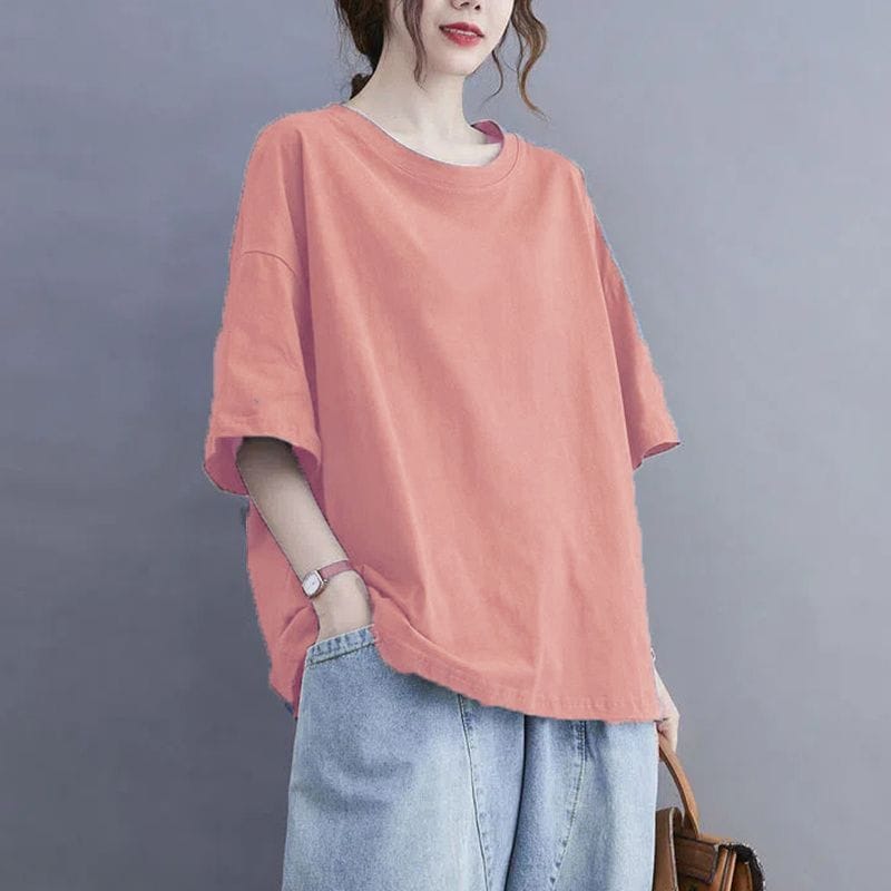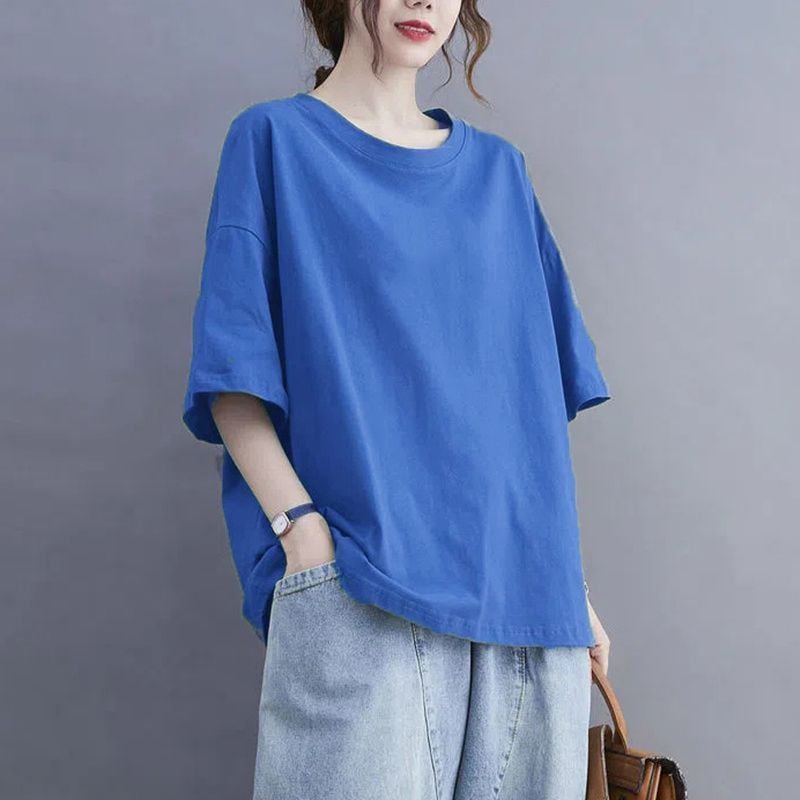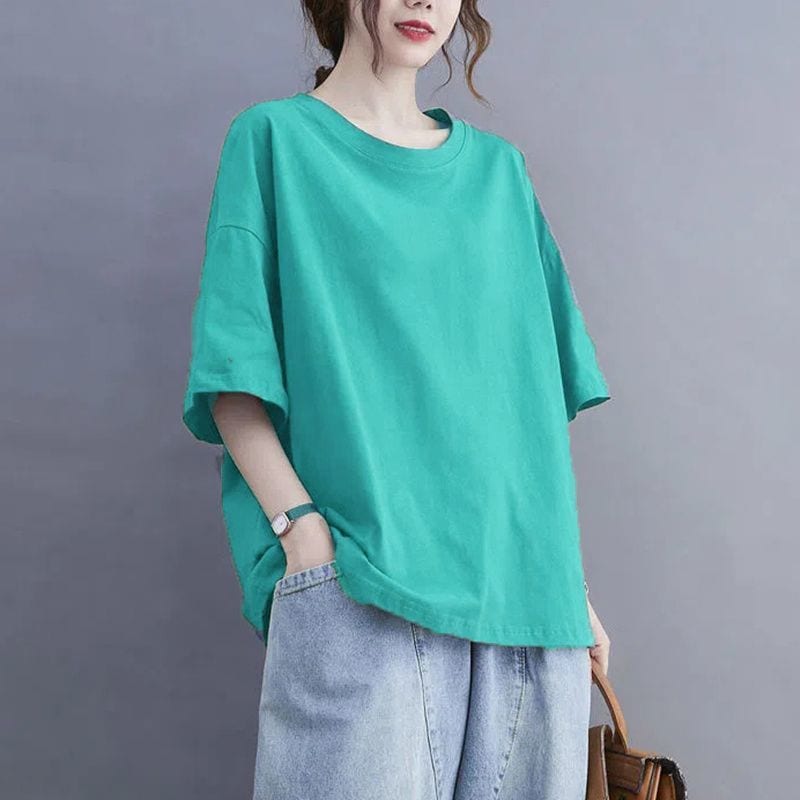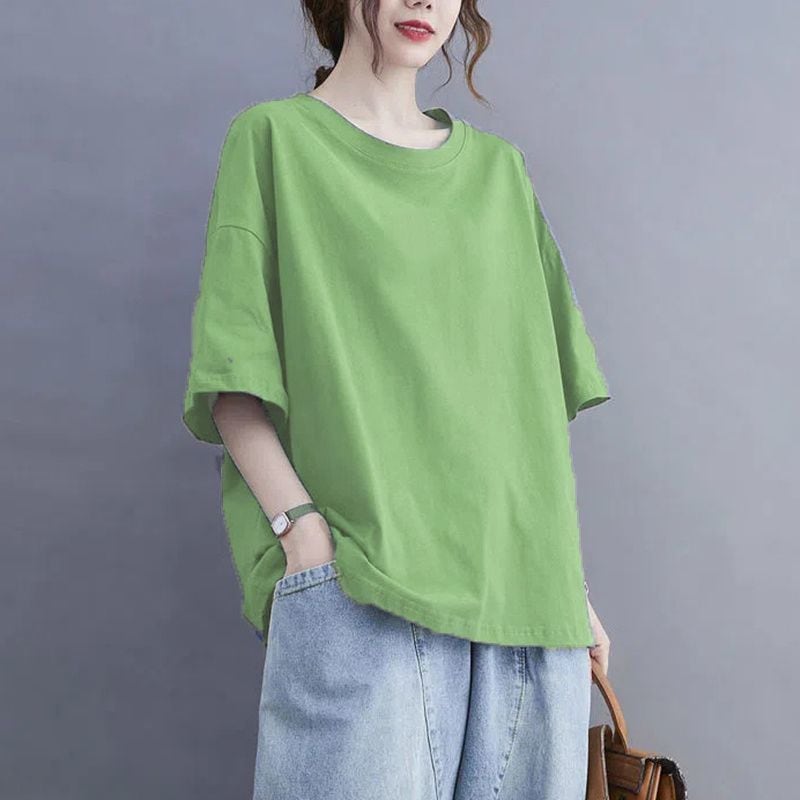 100%綿素材 Tシャツ レディース ゆったり 着痩せ 韓国 無地 夏服Tシャツ 半袖 レディース ゆるトップス 大きいサイズ ティーシャツ