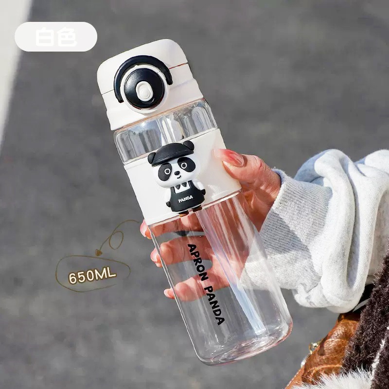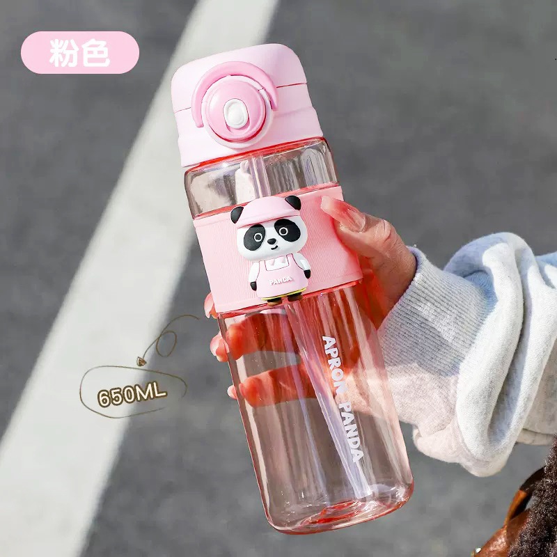 カートゥーン柄 パンダ柄 ストロー付きボトル 2WAY飲み口 独創的 可愛い 持ち運び便利 プラスチック製 学生用 スポーツ用 女性用