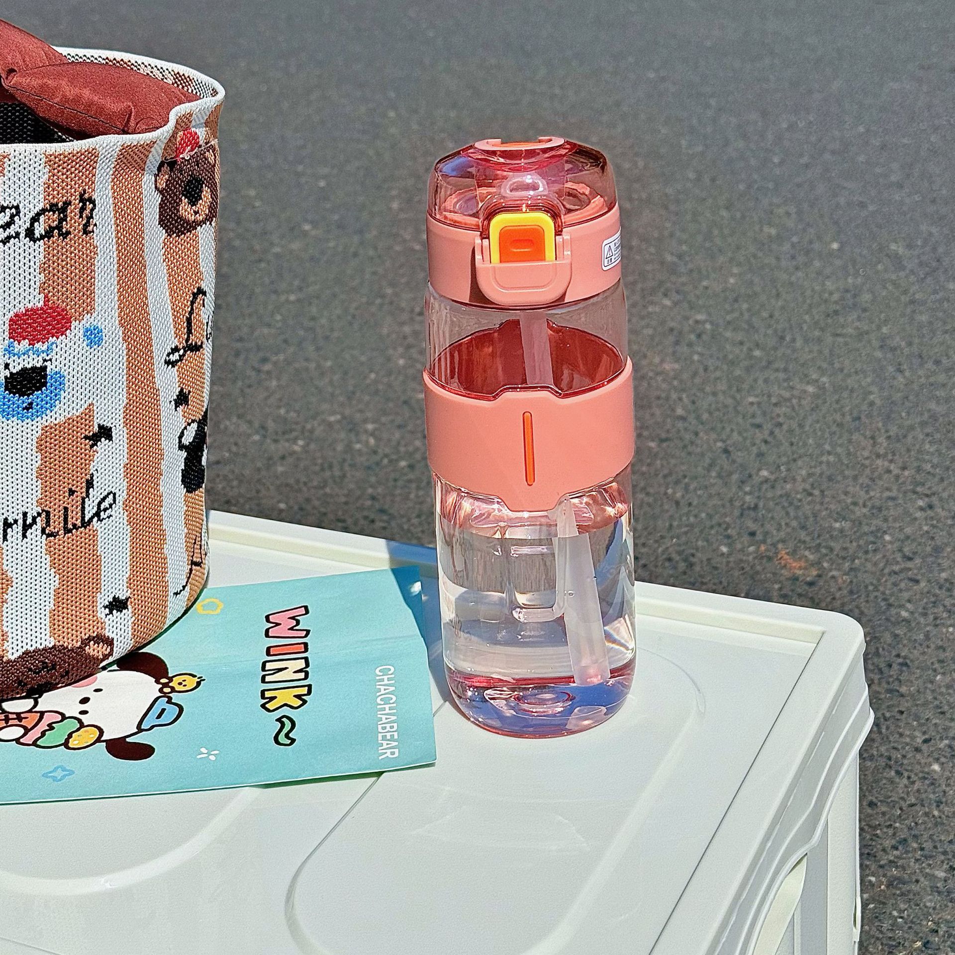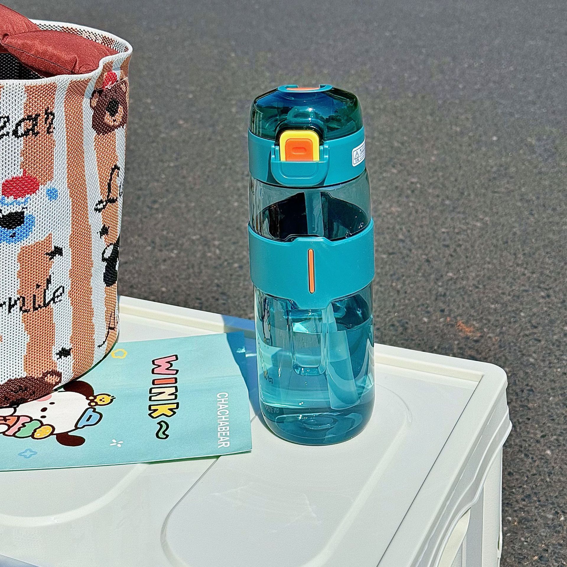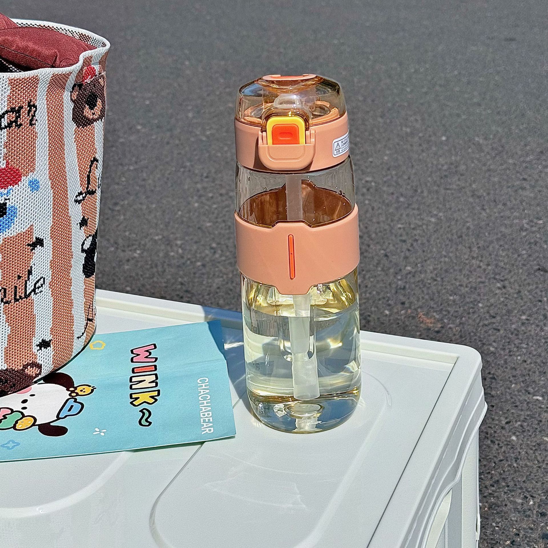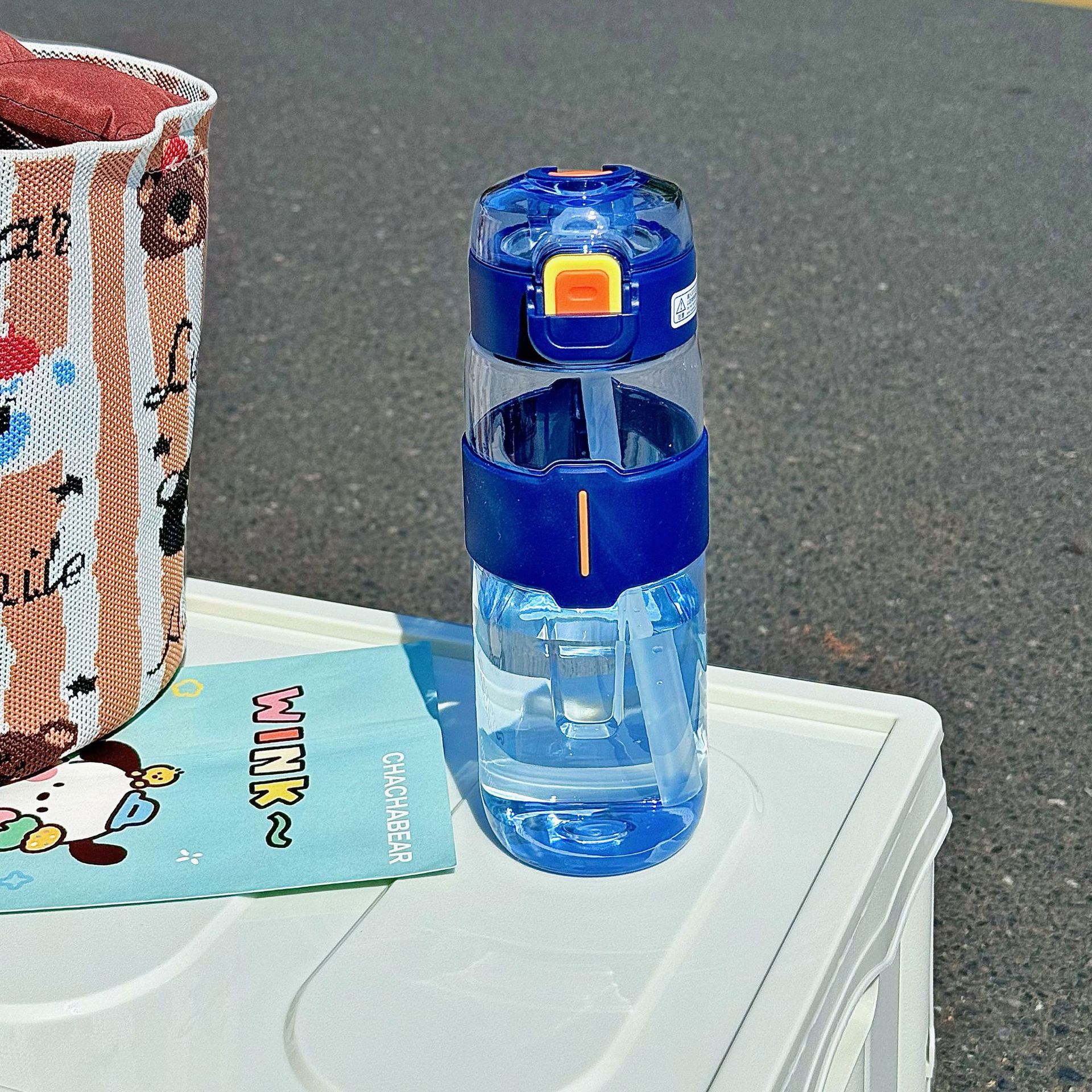 シンプルなスポーツボトル 持ち運び便利 持ち手付き 耐衝撃性 水漏れ防止 ストロー付き 厚手 清新