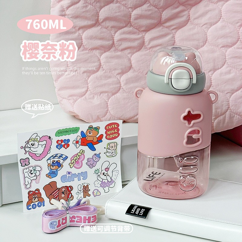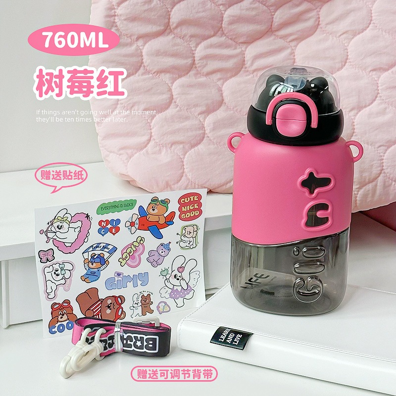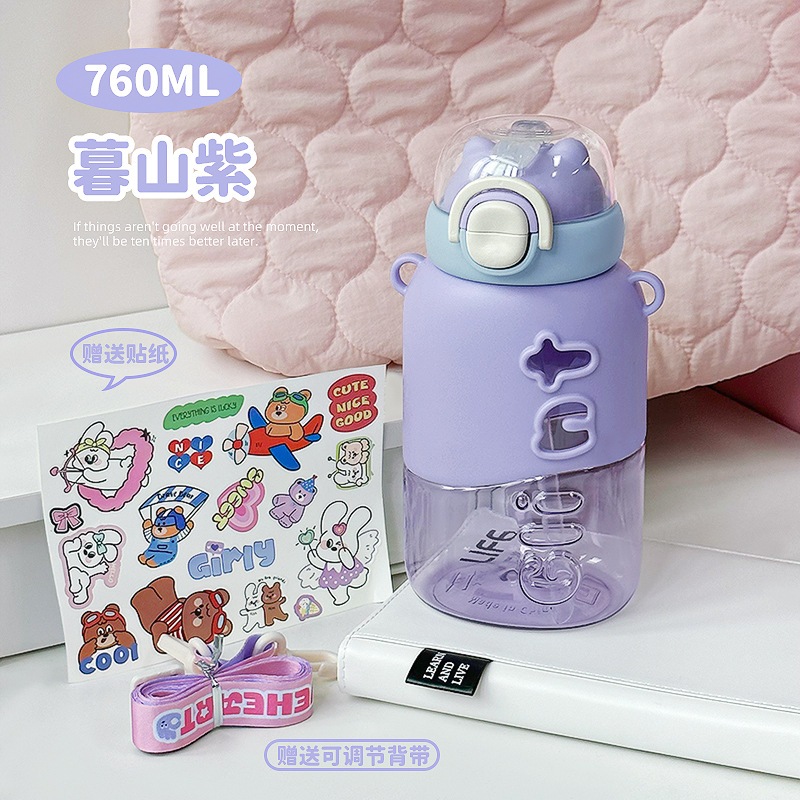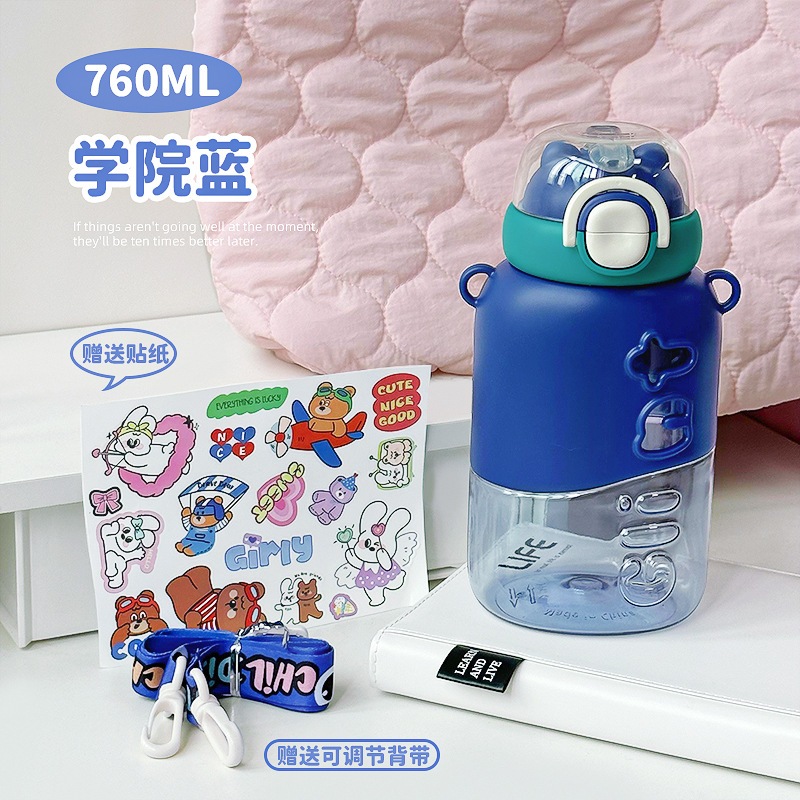 2026年版 子供用プラスチックボトル 持ち運び便利 2WAY飲み口 ストロー付き 耐衝撃性 学生用 通学用