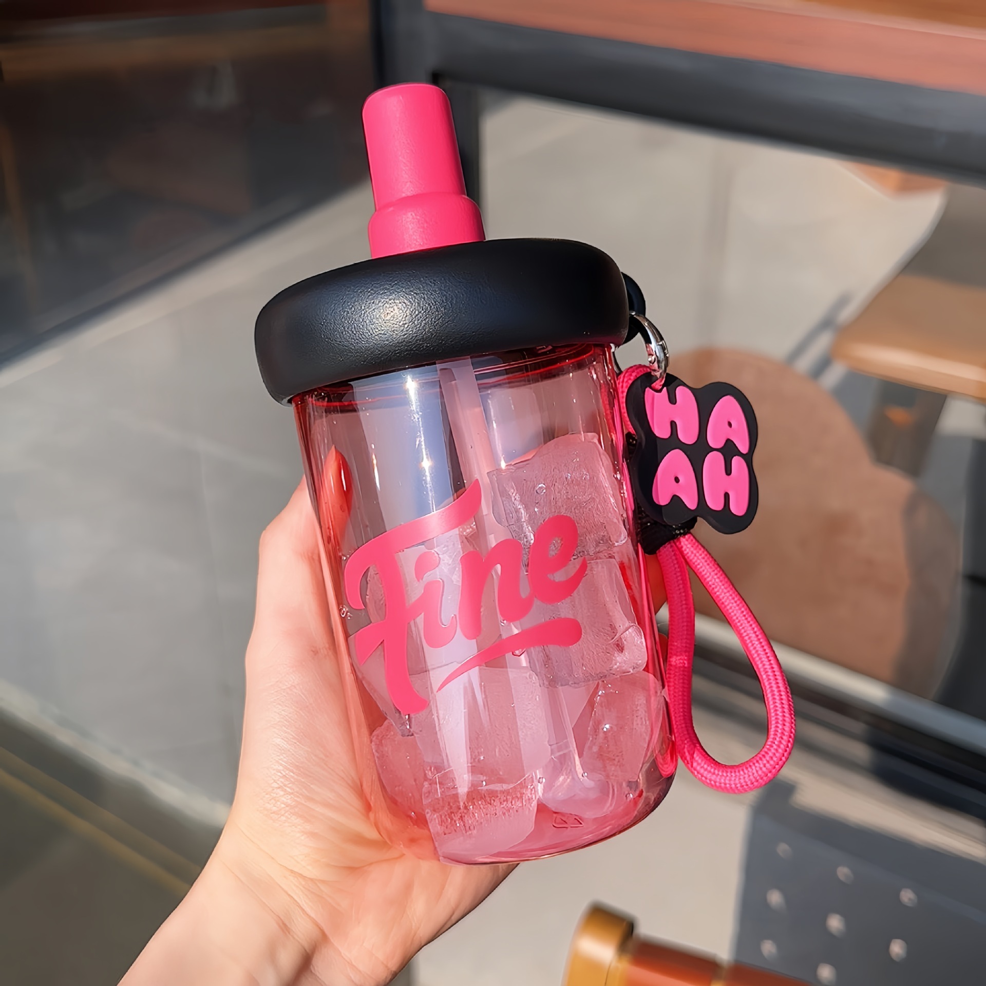 おしゃれな プラスチック製ボトル おしゃれ 自宅・オフィス用 ボトル 学生・カップル用 持ち運び便利 持ち手付き ストロー付き