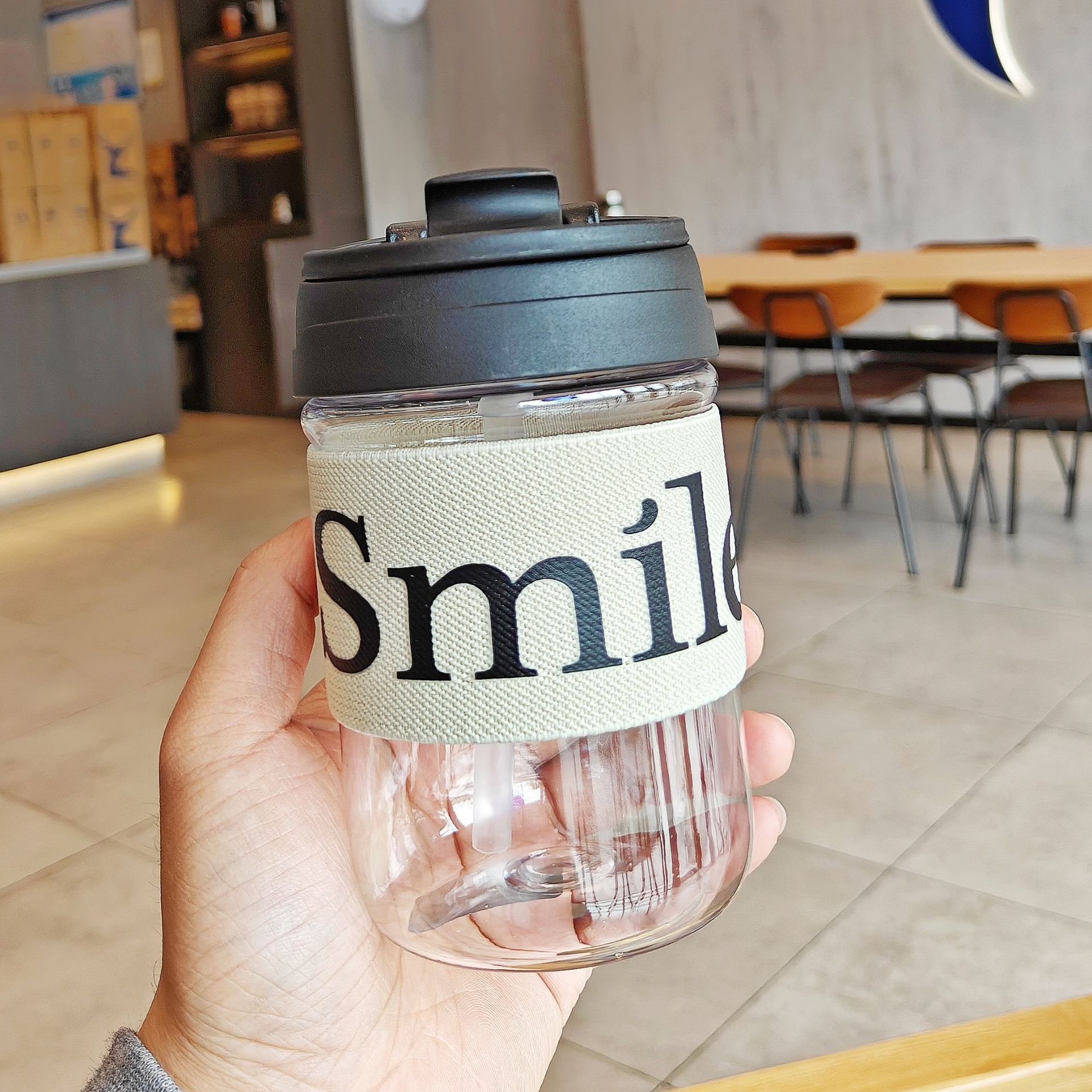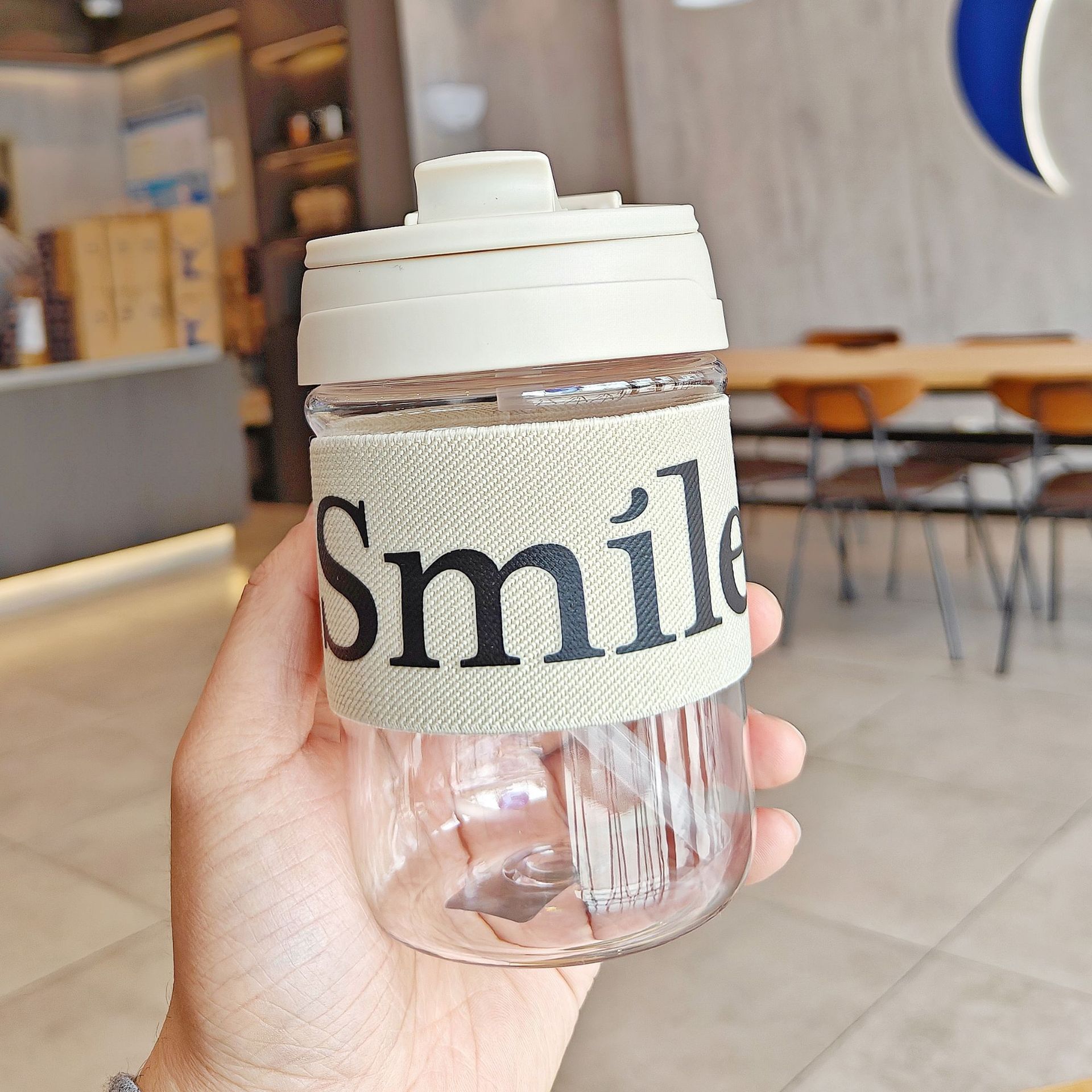シンプルな プラスチック製ボトル 2WAY飲み口 熱防止 英語表記 コーヒー用 おしゃれ 持ち運び便利 持ち手付き ストロー付き