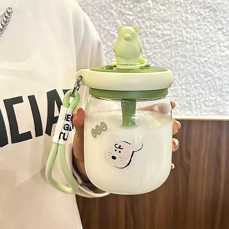 カートゥーン柄 ストロー付きボトル 女性用 スプーン付き オフィス用 可愛いボトル 持ち運び便利 独創的 学生用 プラスチック製